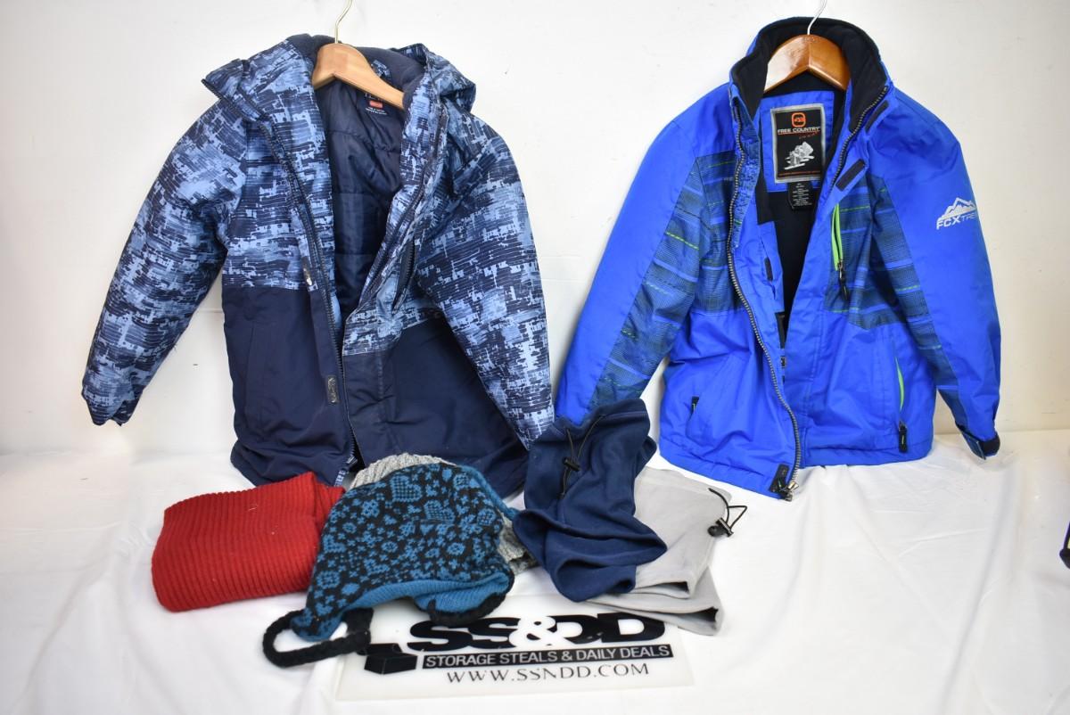 2 Kids coats Place & Free Country: sizes XS(5/6), Med (7/8), 2 hats, 2 gators, 1 scarf