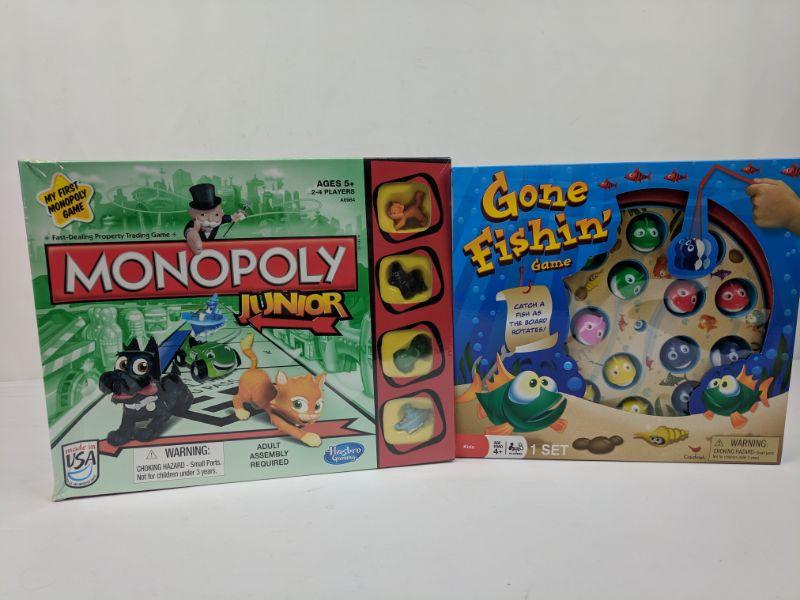 2 Kids Games, Monopoly Jr, Gone Fishin' - New