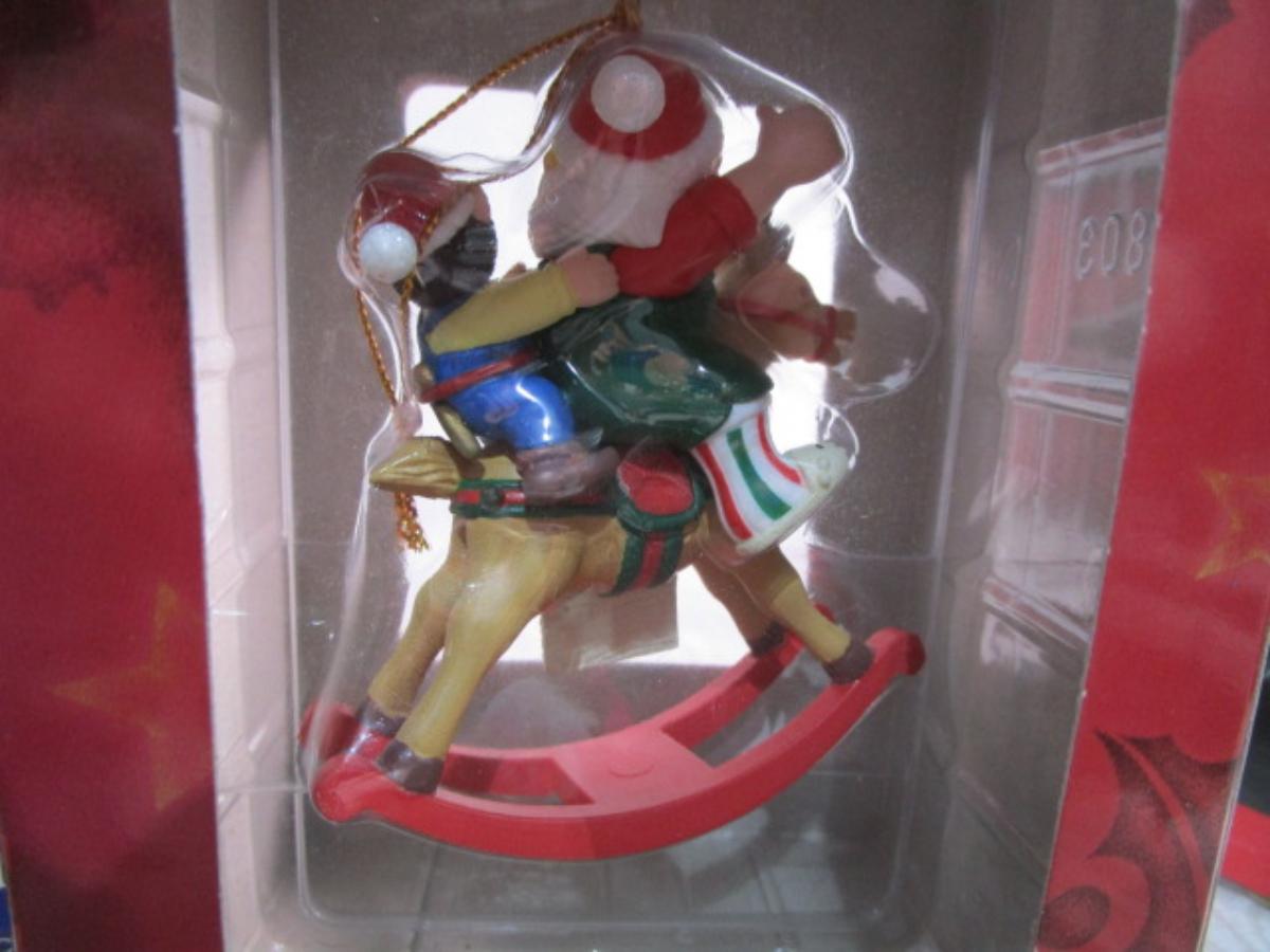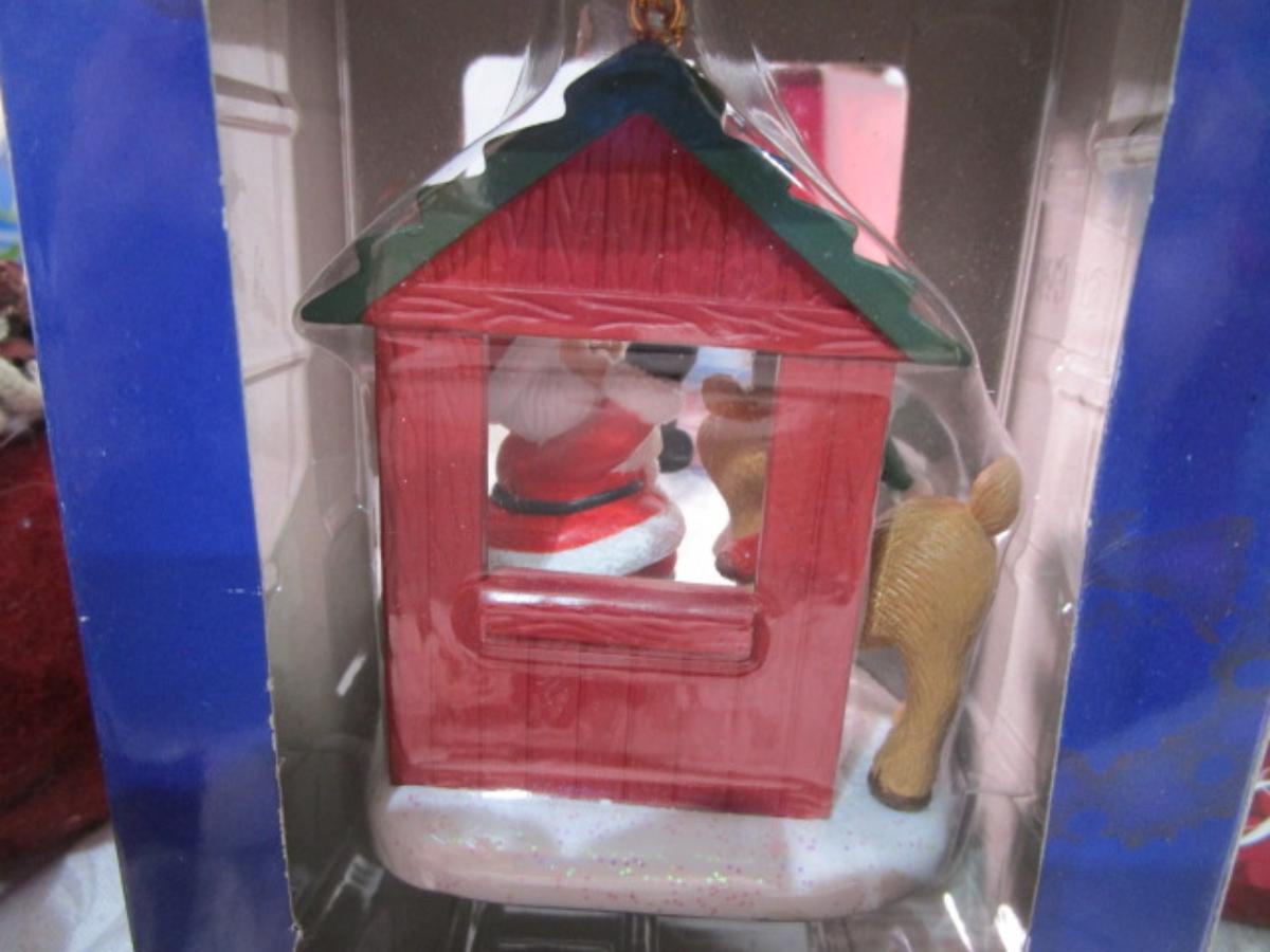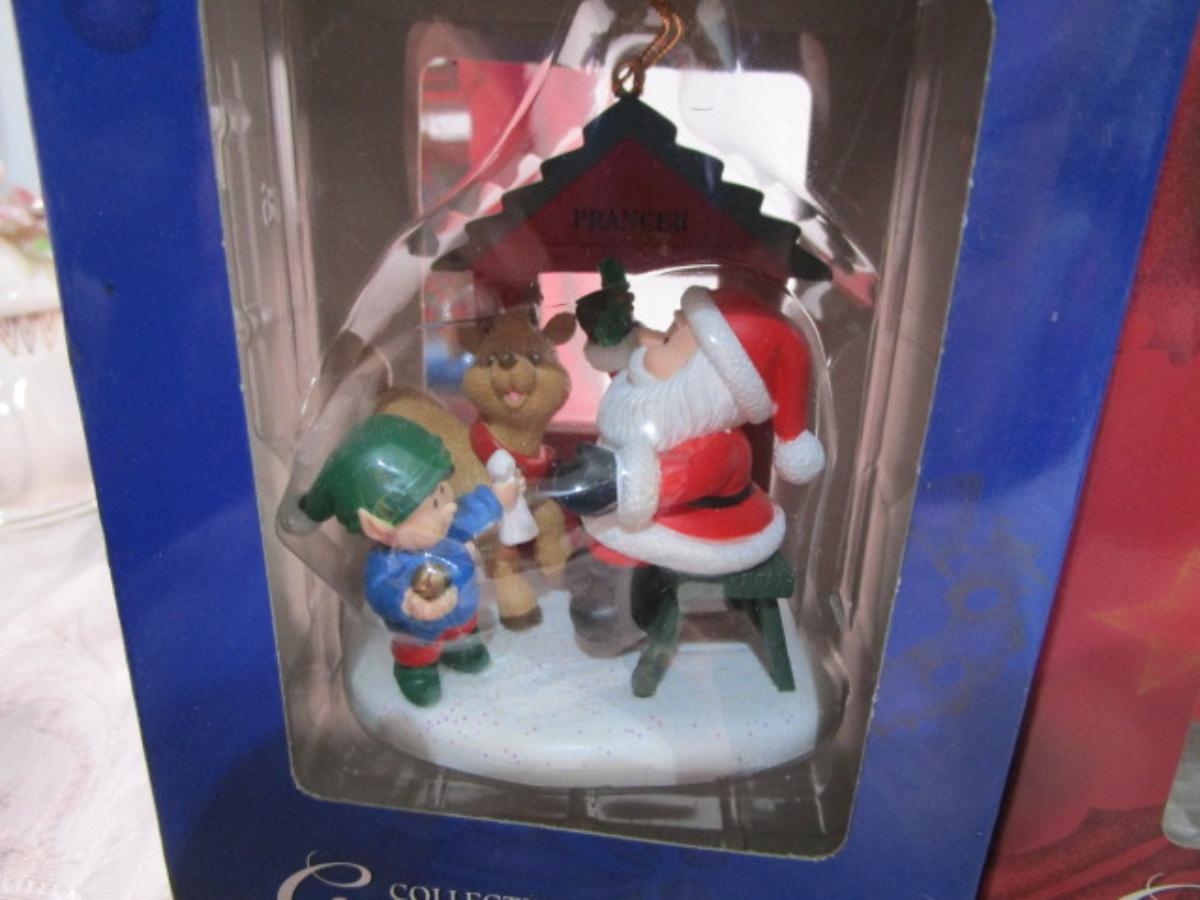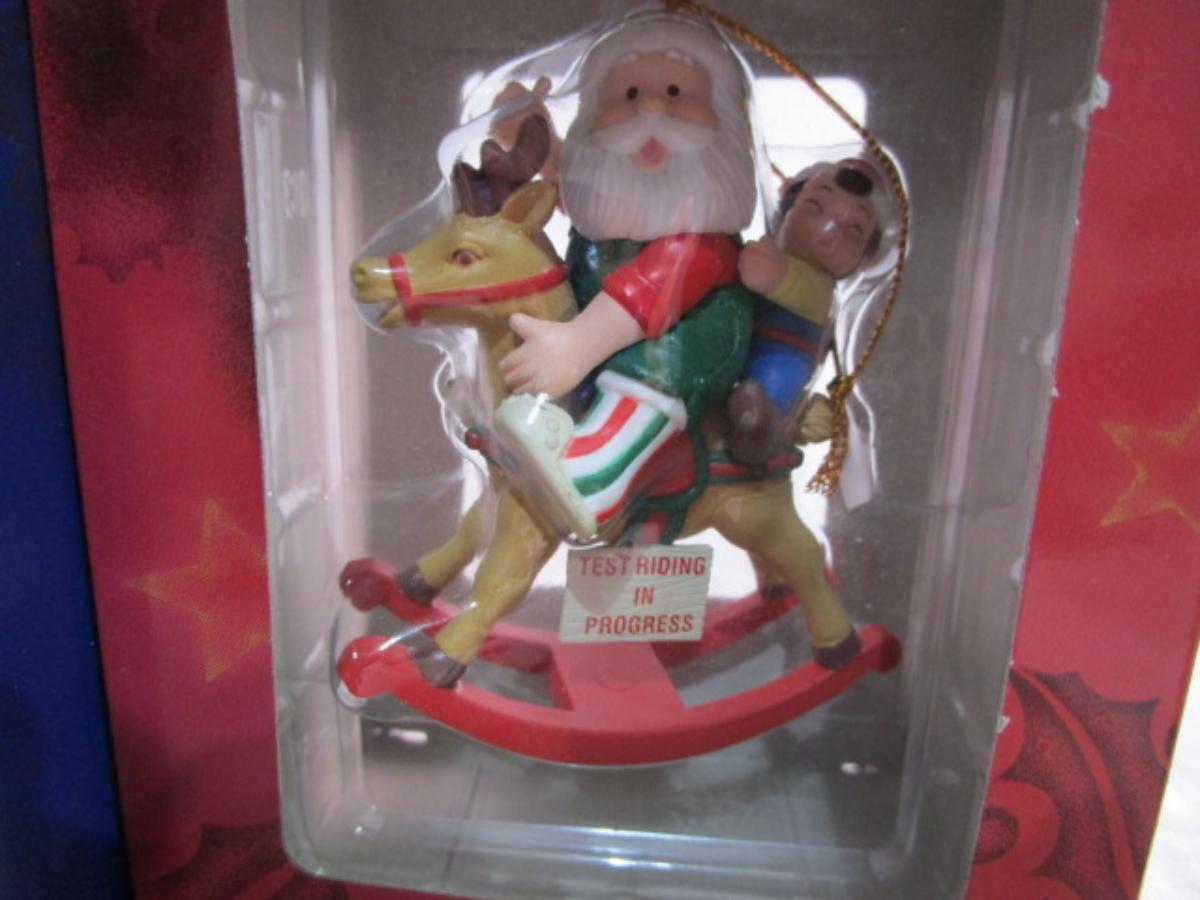 In boxes, Santa with elf & reindeer, Santa with elf riding a rocking reindeer, see pictures