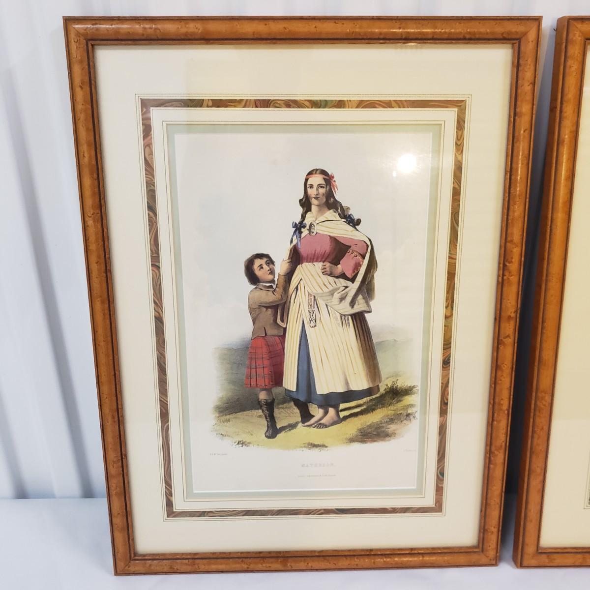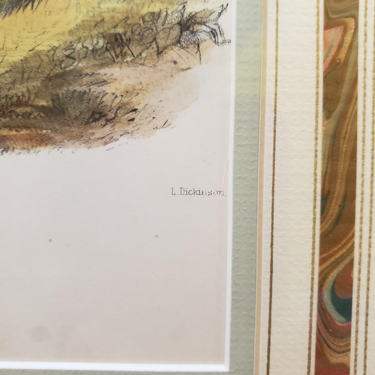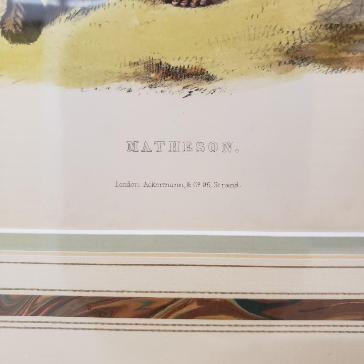 These 2 L. Dickson prints are printed by London, Ackermann and Co and titled Matheson and Cameron by L. Dickson. The wooden frame measures 16"x21.5"x1" and appears to be professionally matted and framed. There are two small holes on the back of each in the black paper about the size of a dime. Other than that, they appear to be in very good condition.