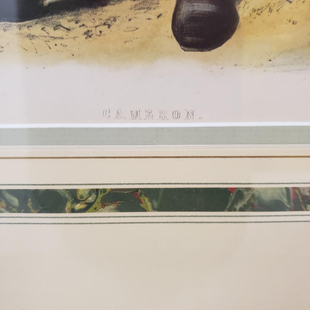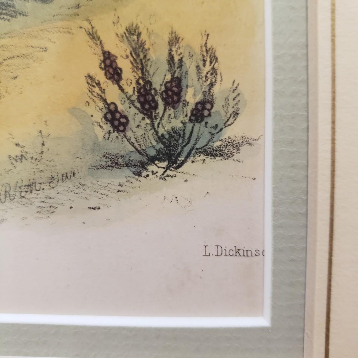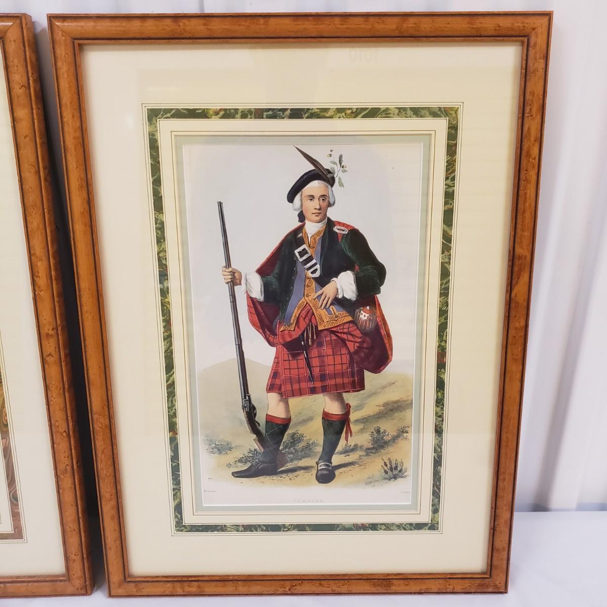 These 2 L. Dickson prints are printed by London, Ackermann and Co and titled Matheson and Cameron by L. Dickson. The wooden frame measures 16"x21.5"x1" and appears to be professionally matted and framed. There are two small holes on the back of each in the black paper about the size of a dime. Other than that, they appear to be in very good condition.