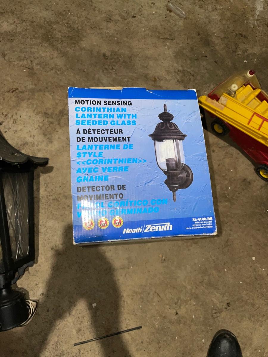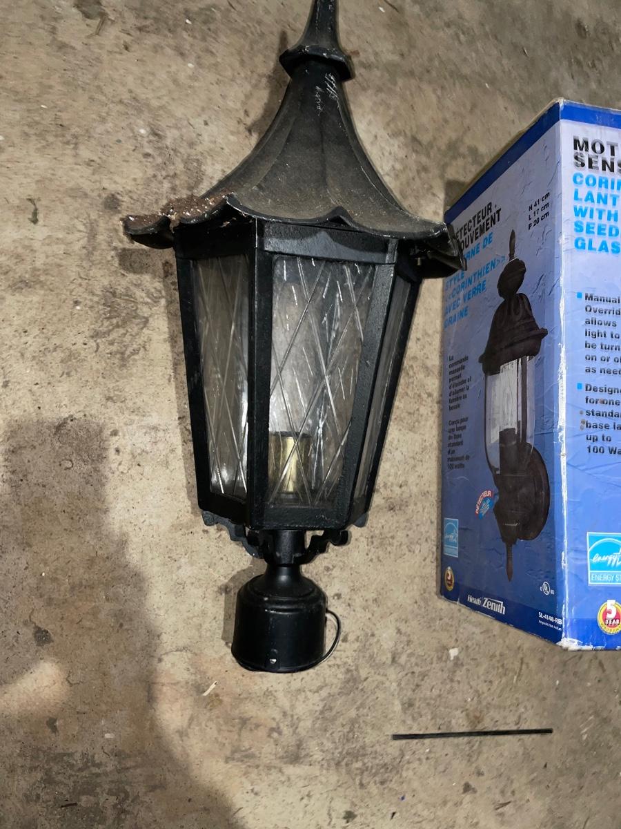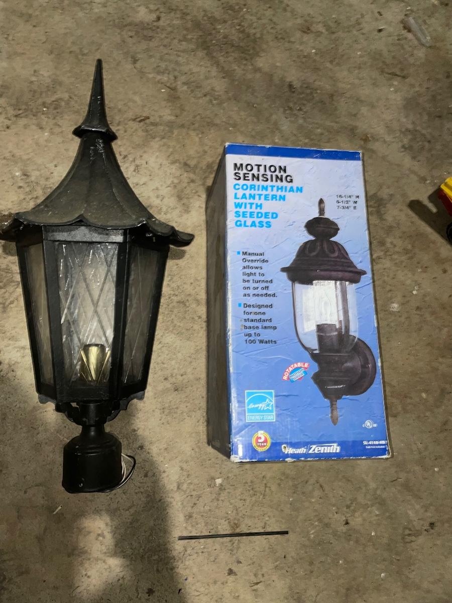 Two lamppost lights. One is used on great condition and working order. The scent one is brand new and still in the box