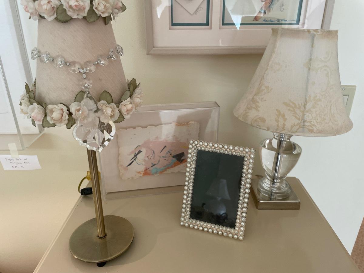 2 lamps, frame and paper art