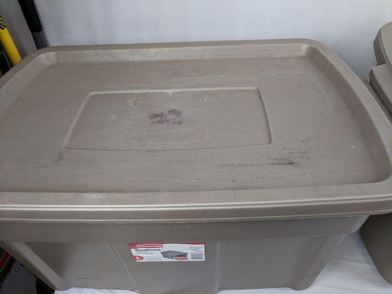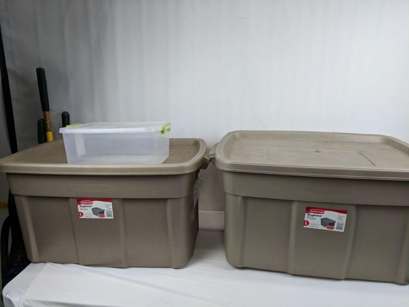 2 Large 31 Gal Totes (Rubbermaid), 1 12.7 QT. Tote, Totes Need TLC, Not Broken