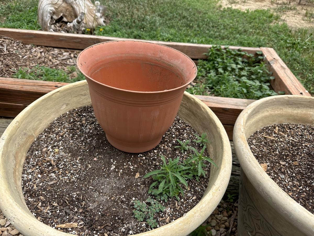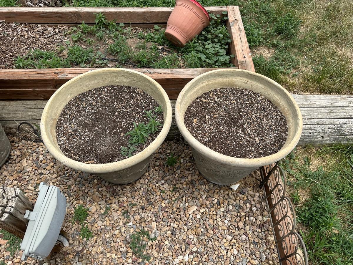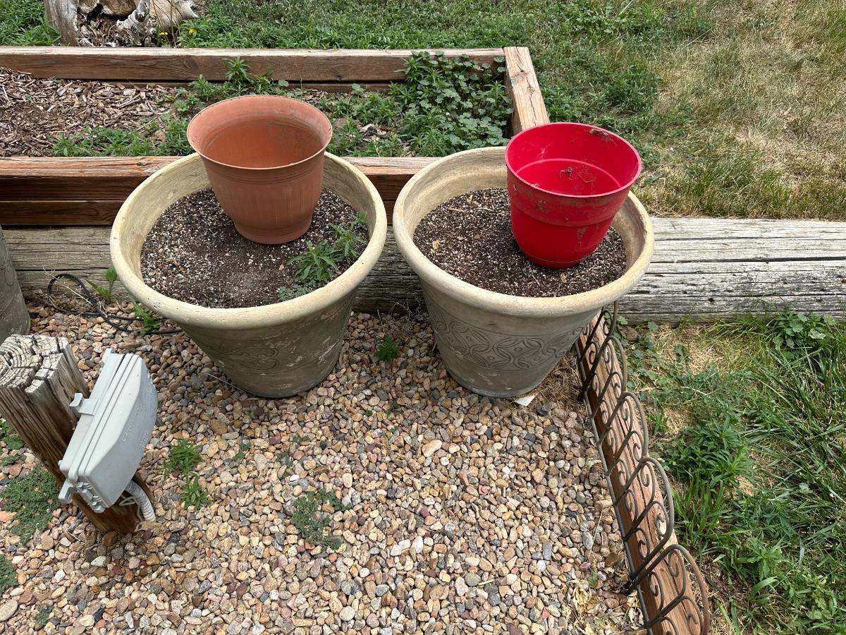 2 LARGE AND 2 SMALLER FLOWER POTS