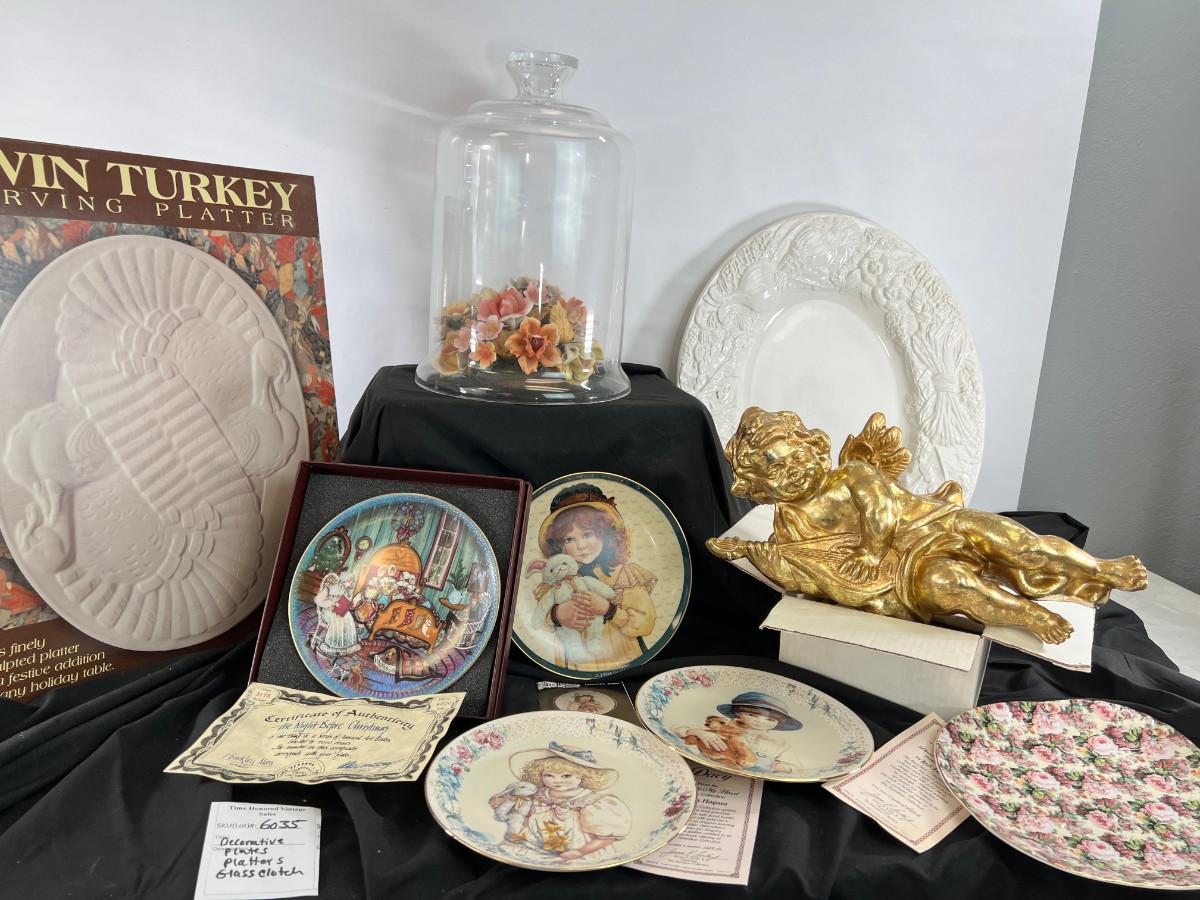2 large china platters, Decor plates with COA, Large glass