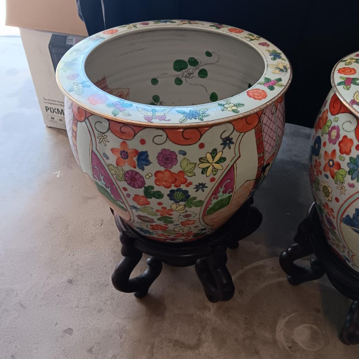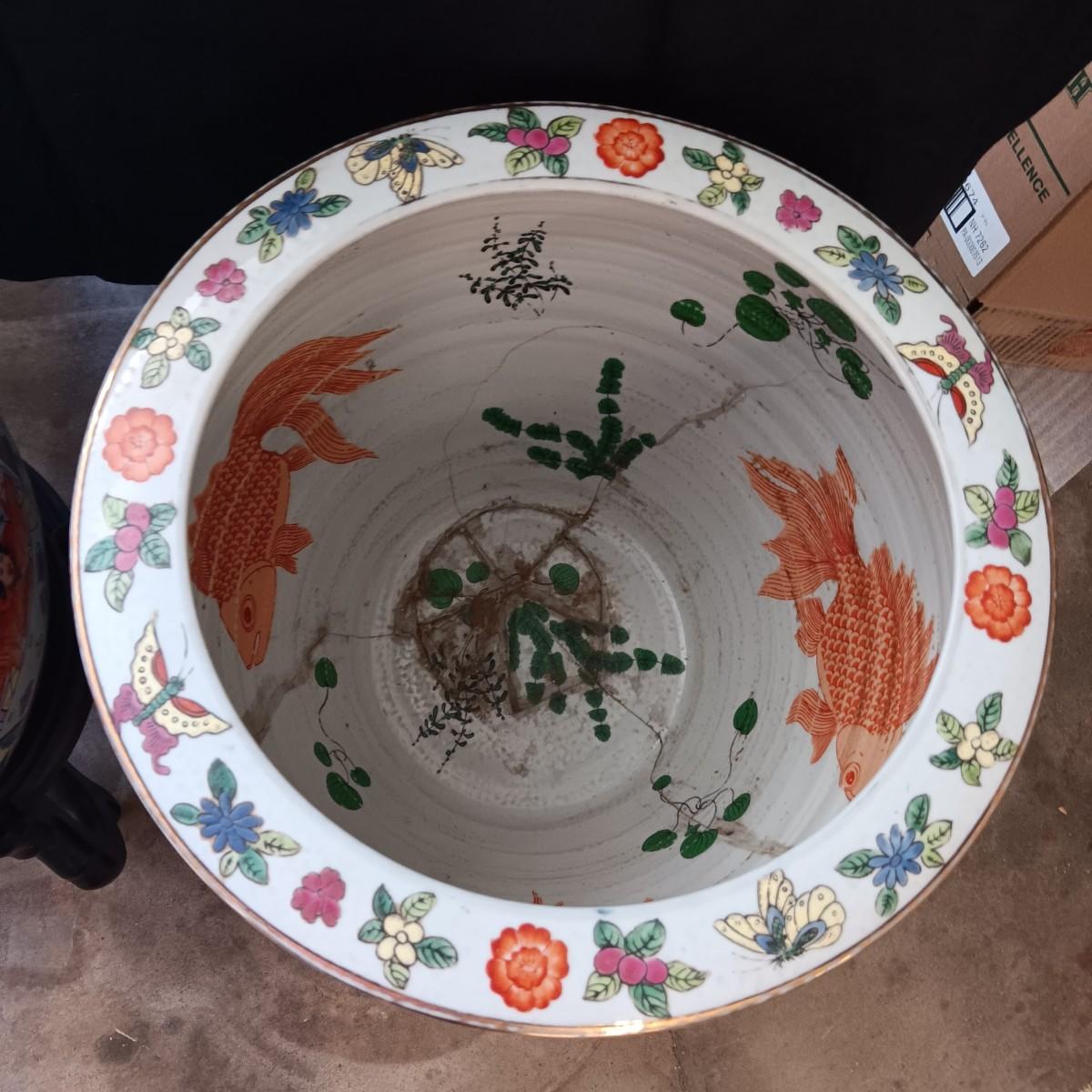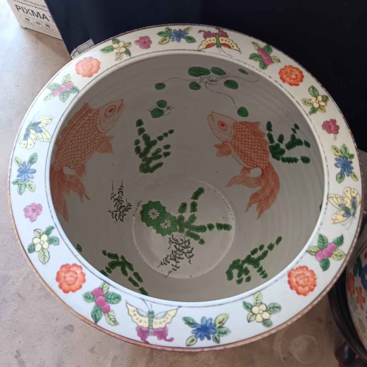 2 LARGE CHINESE PORCELAIN FISH BOWLS/PLANTERS