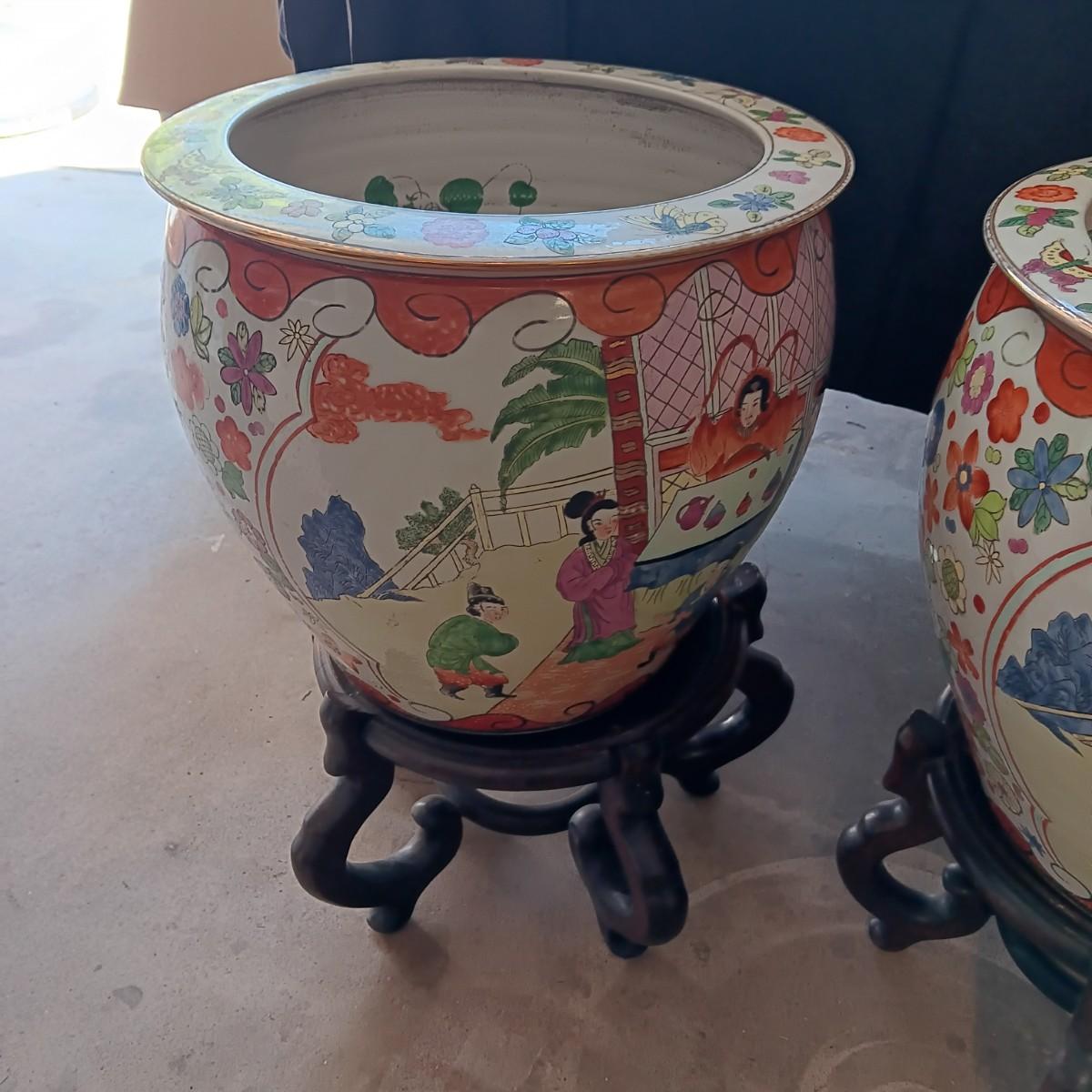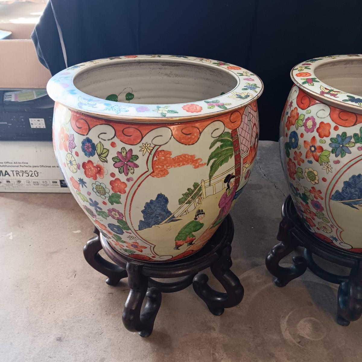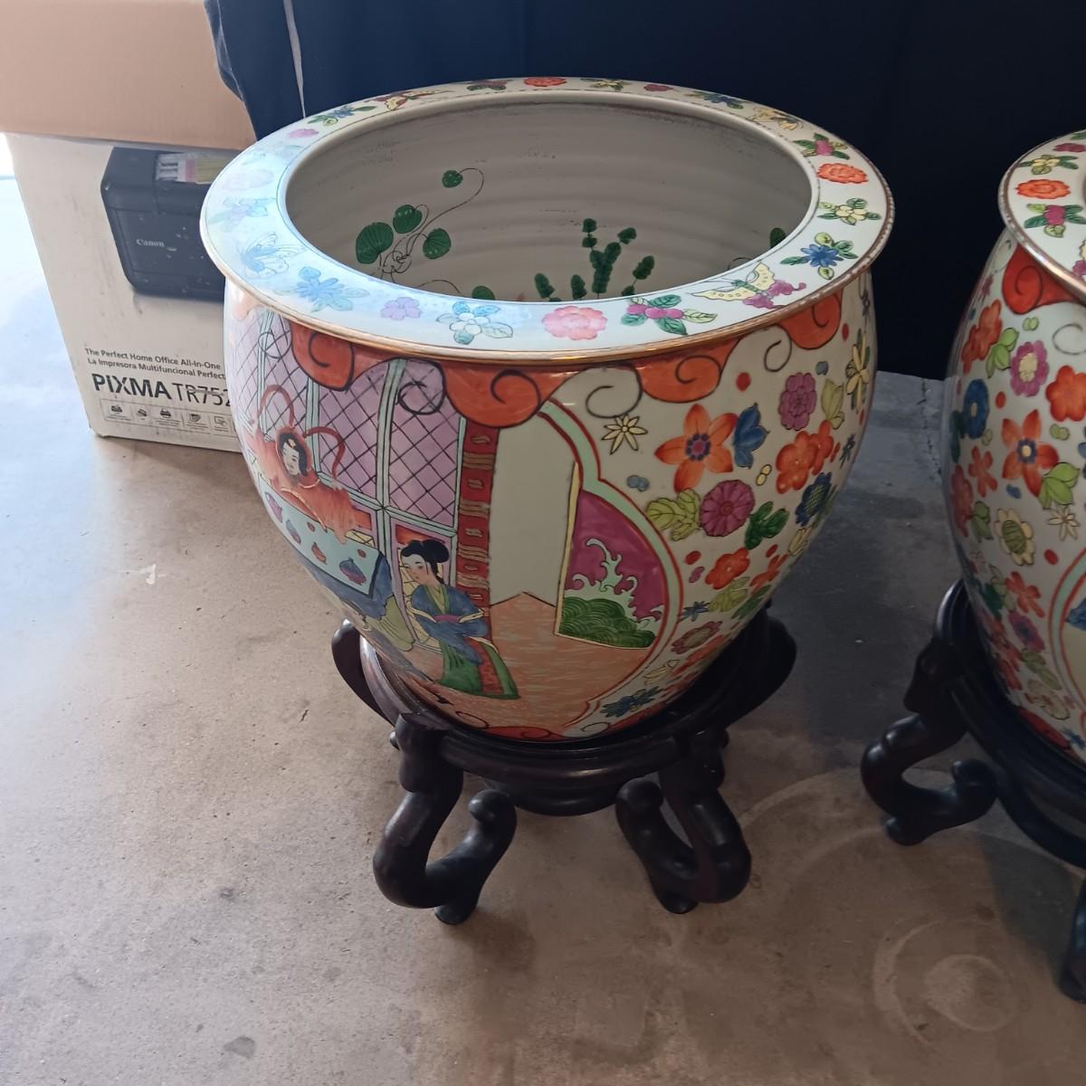 2 LARGE CHINESE PORCELAIN FISH BOWLS/PLANTERS