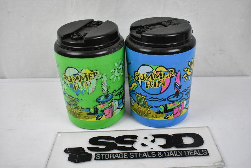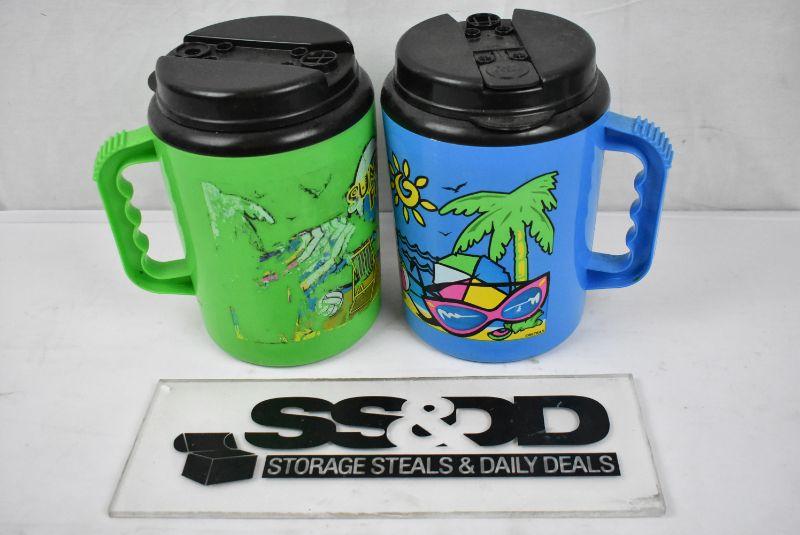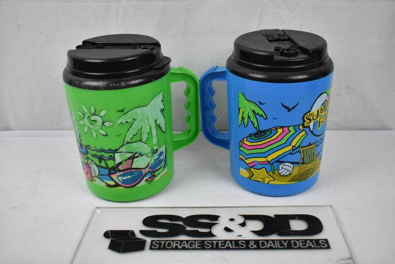 2 Large Drink Mugs "Summer Fun" 1 Blue 1 Green