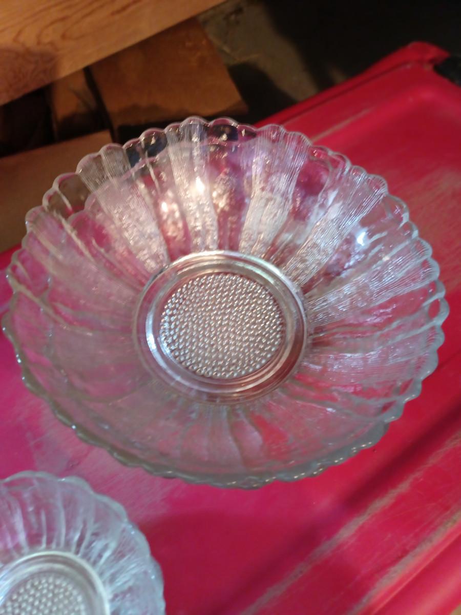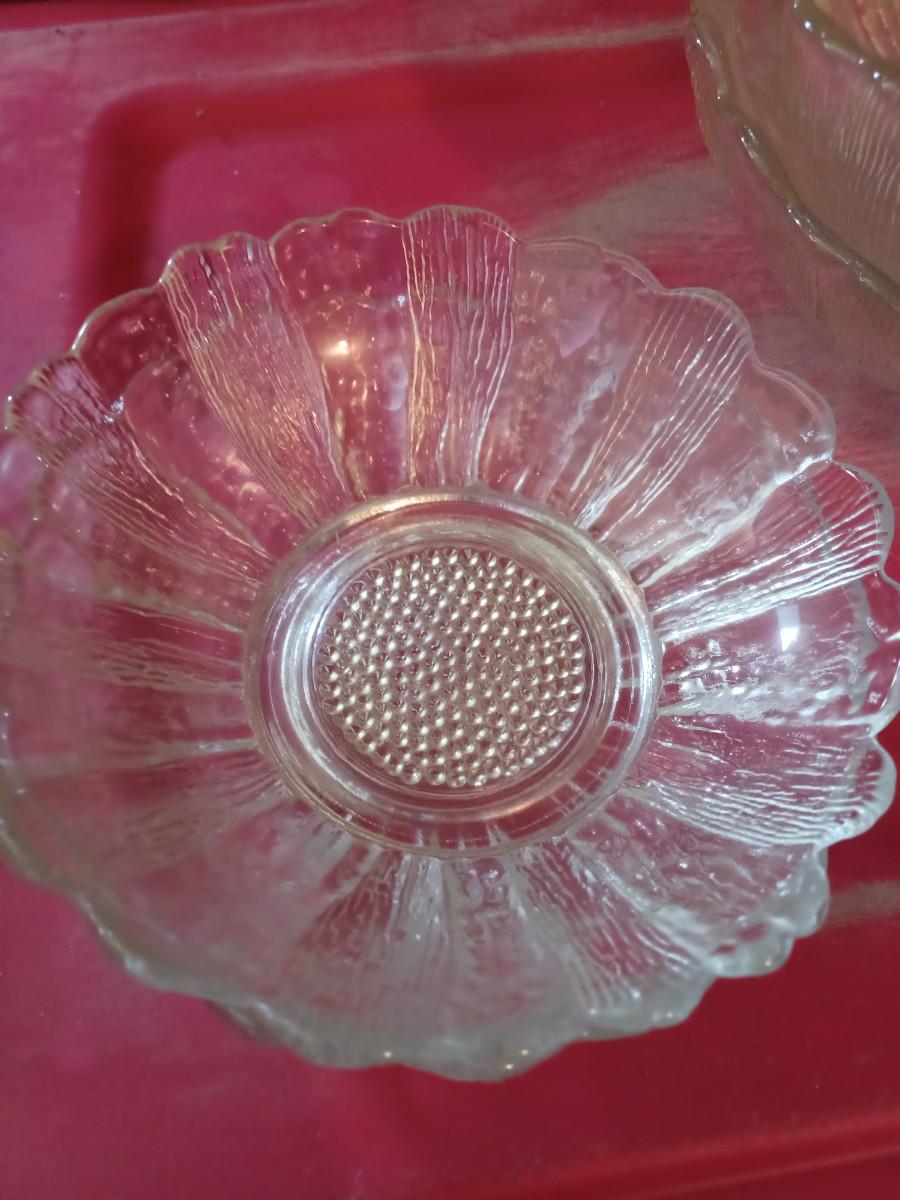 2 Large Glass Daisy Salad Bowl & 2 Serving Bowl