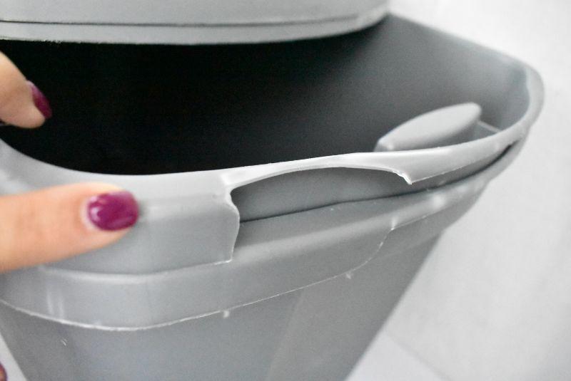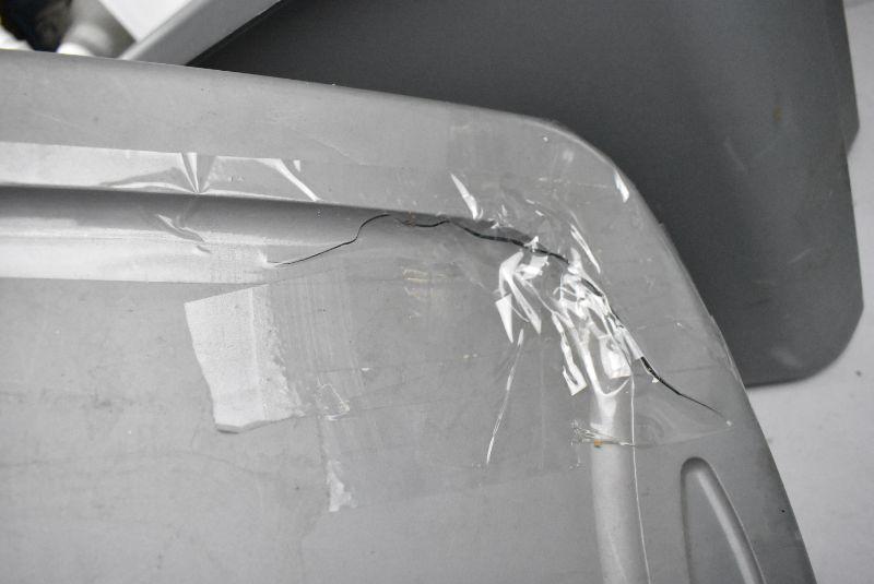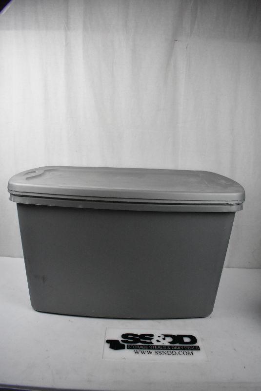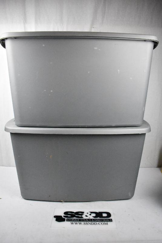 2 Large Gray Storage Bins with Lids,by Sterilite. Cracked edge, cracked lid