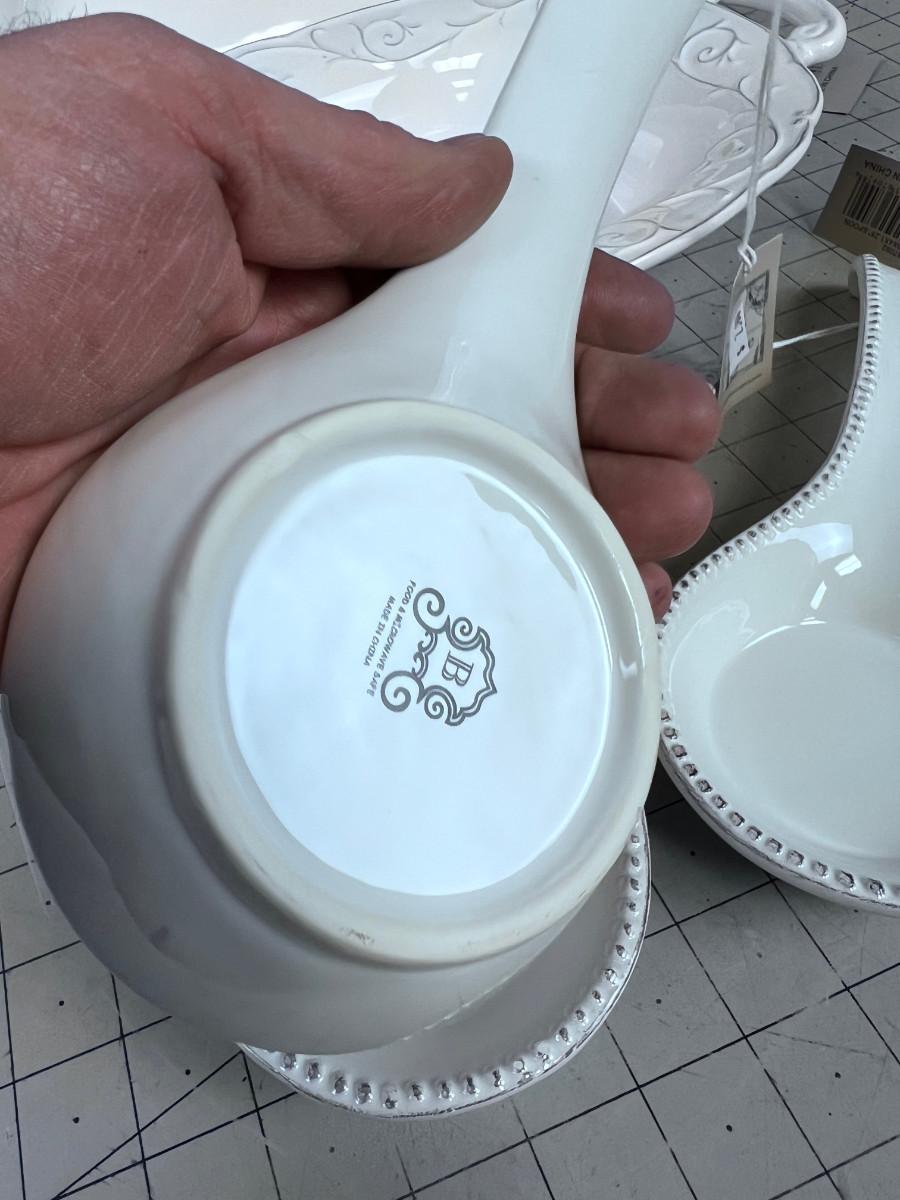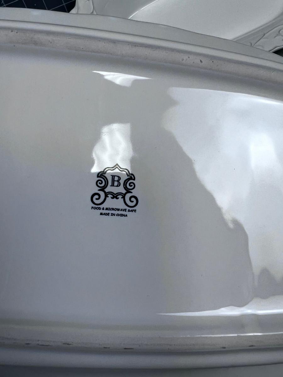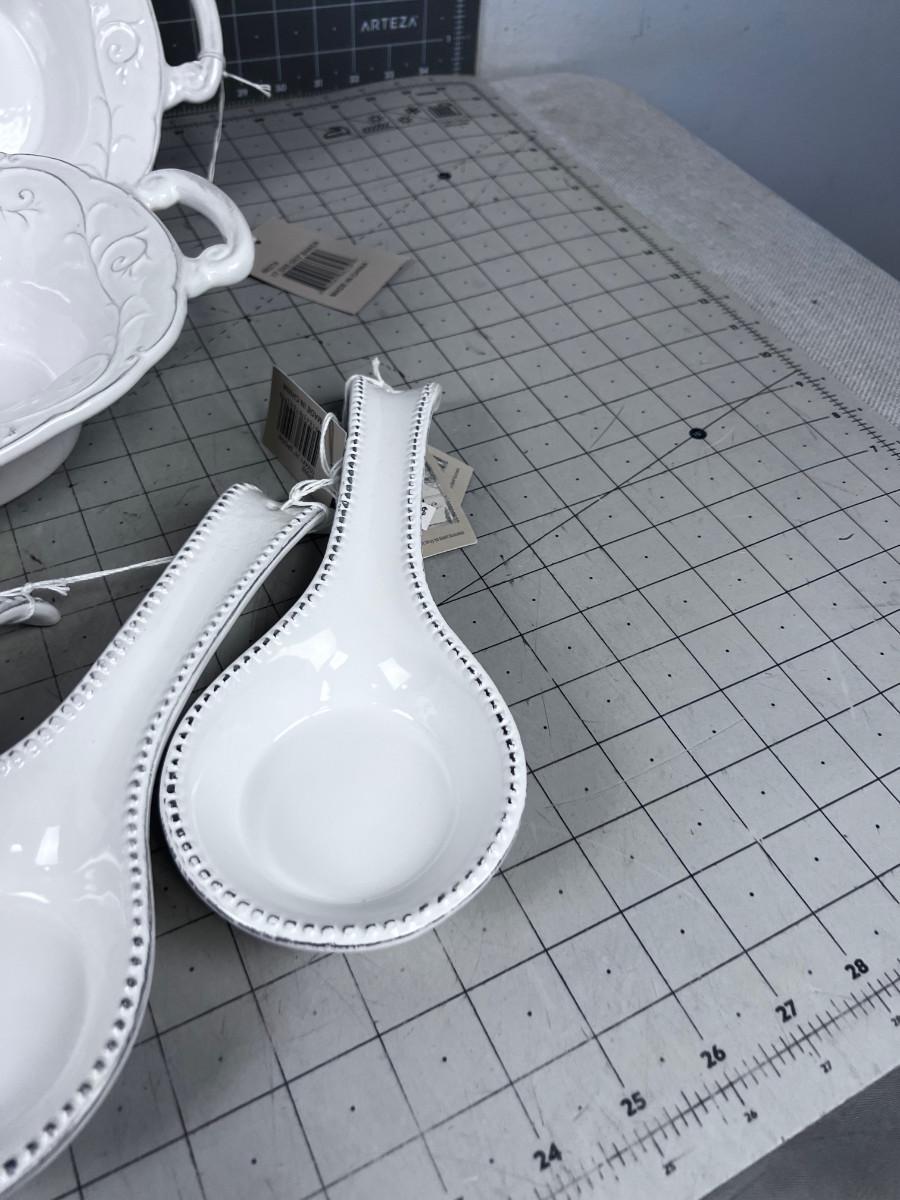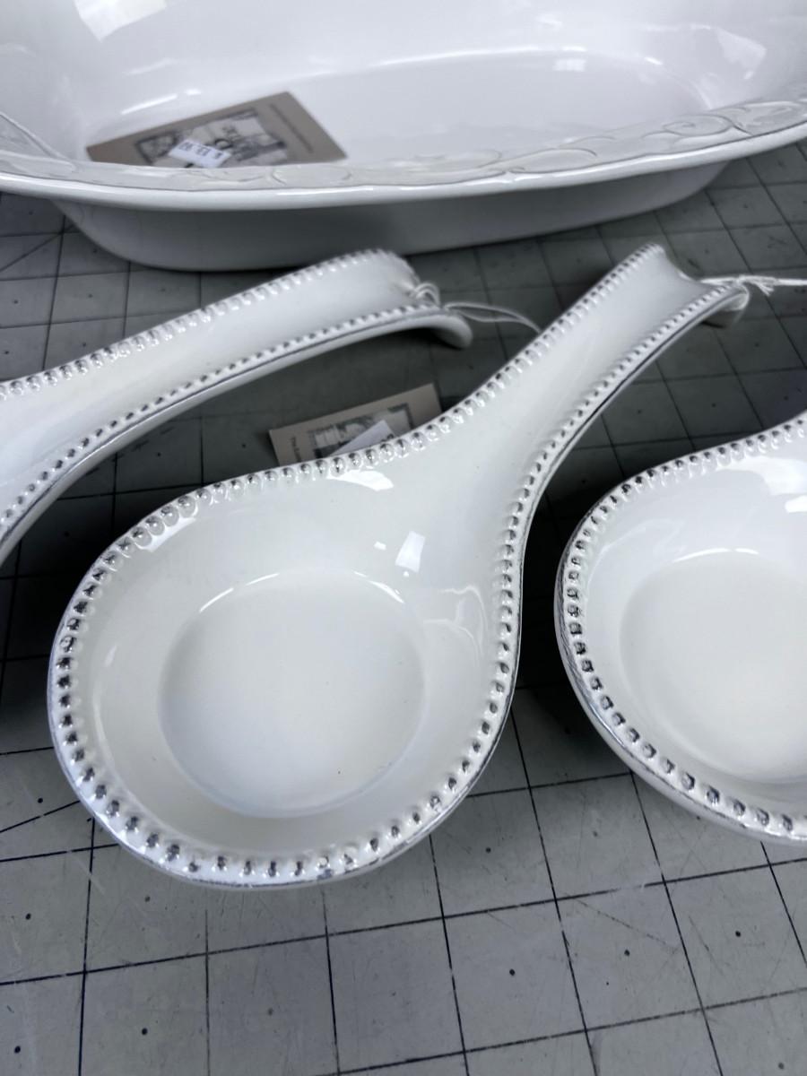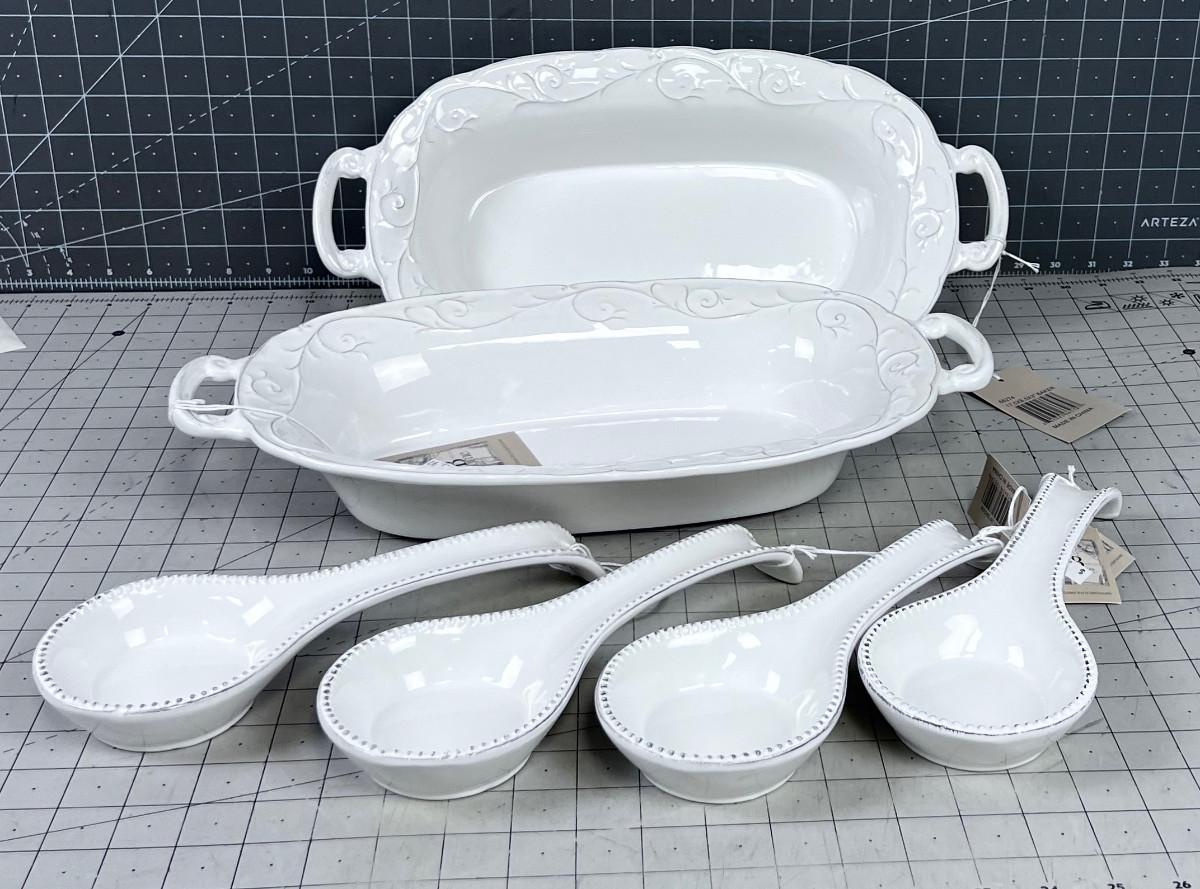 2 Large Serving Platters and 4 Spoon Rests White Ceramic