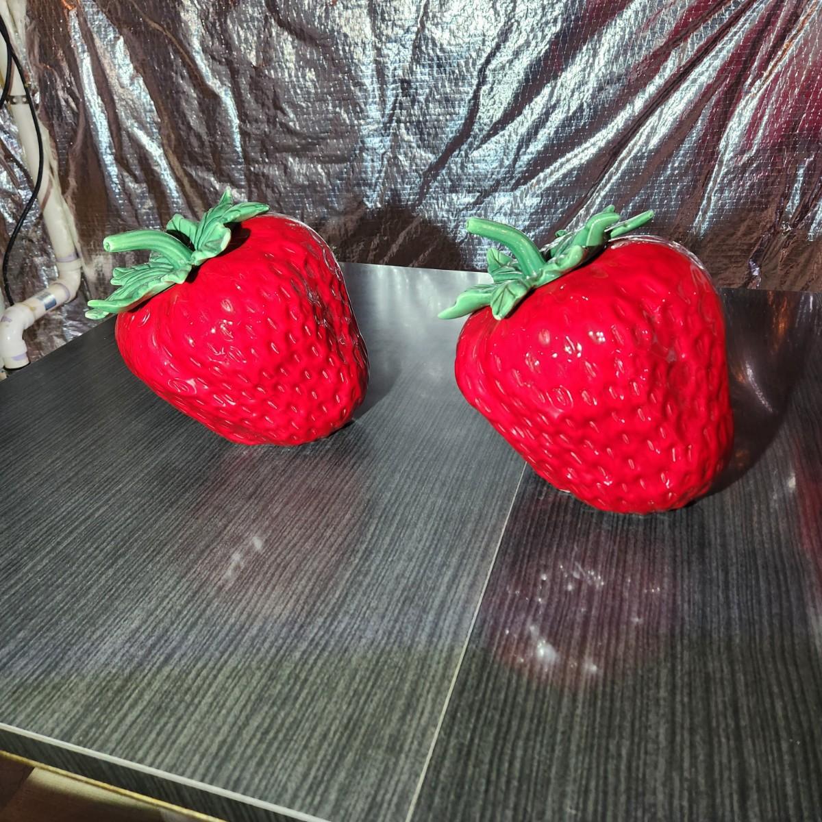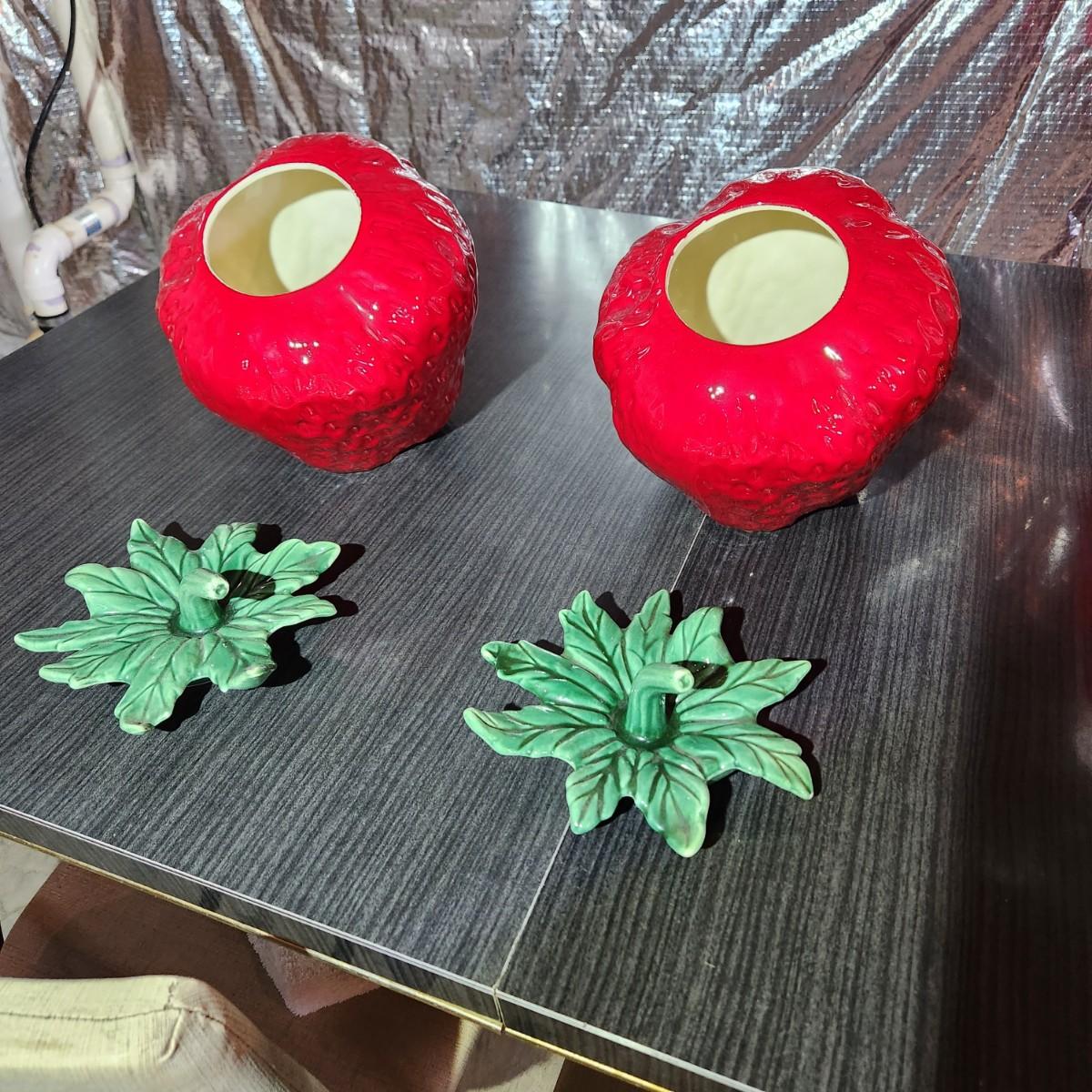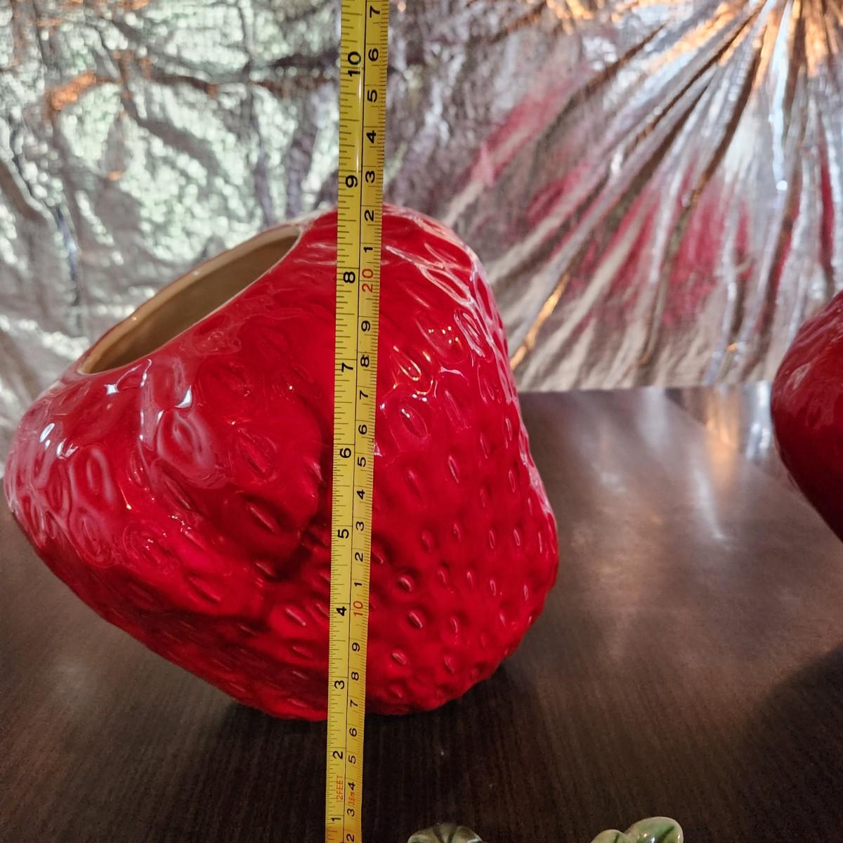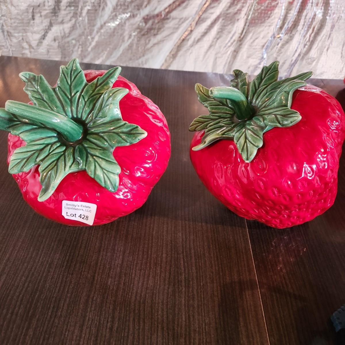 2 Large Strawberry Ceramic Red Tilted Cookie Jars
