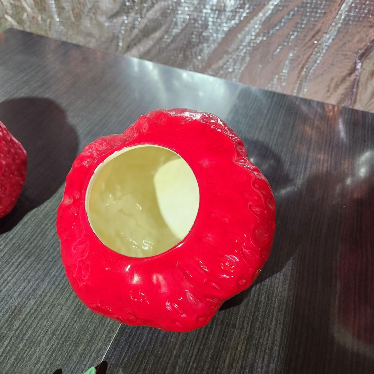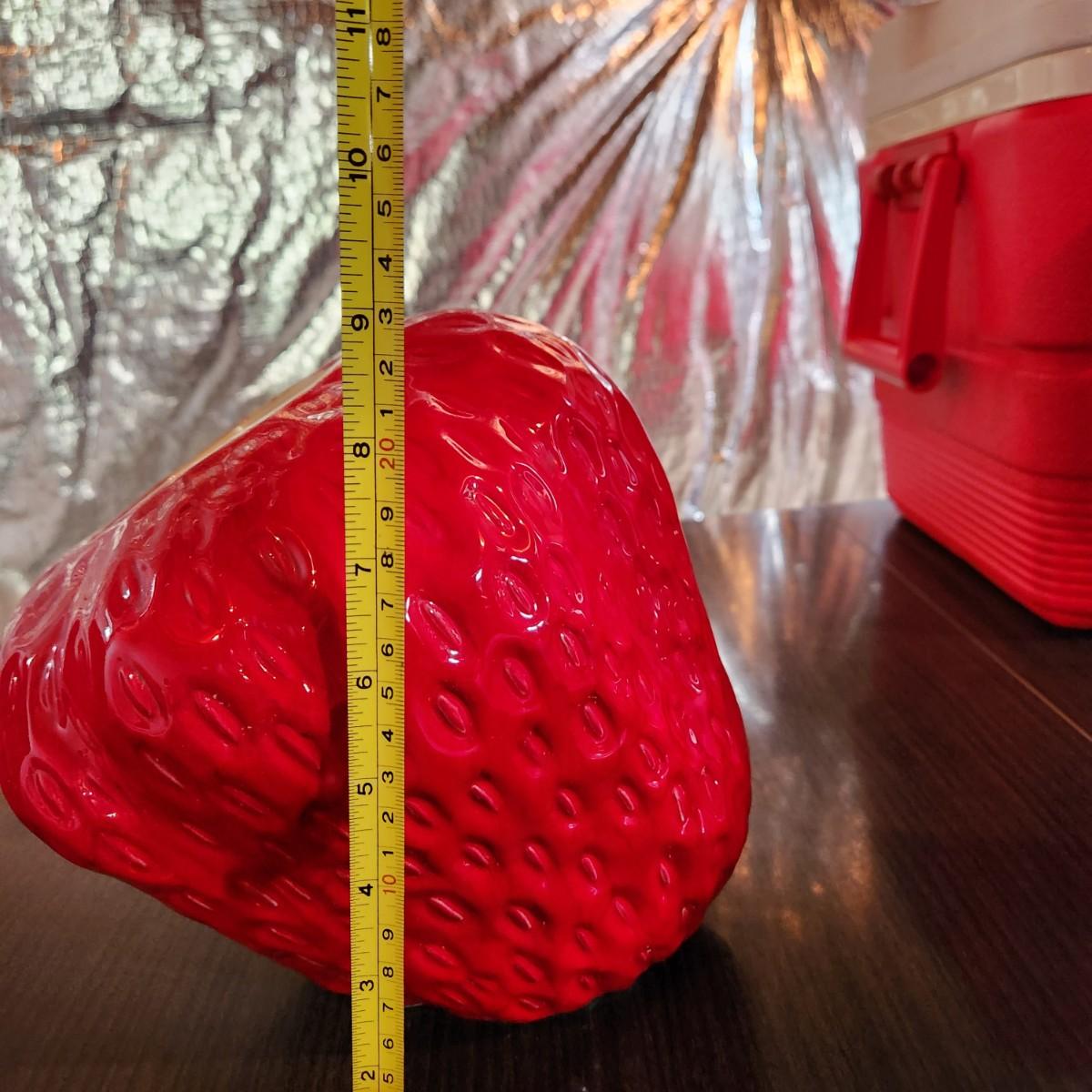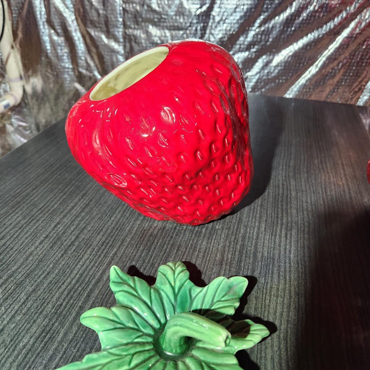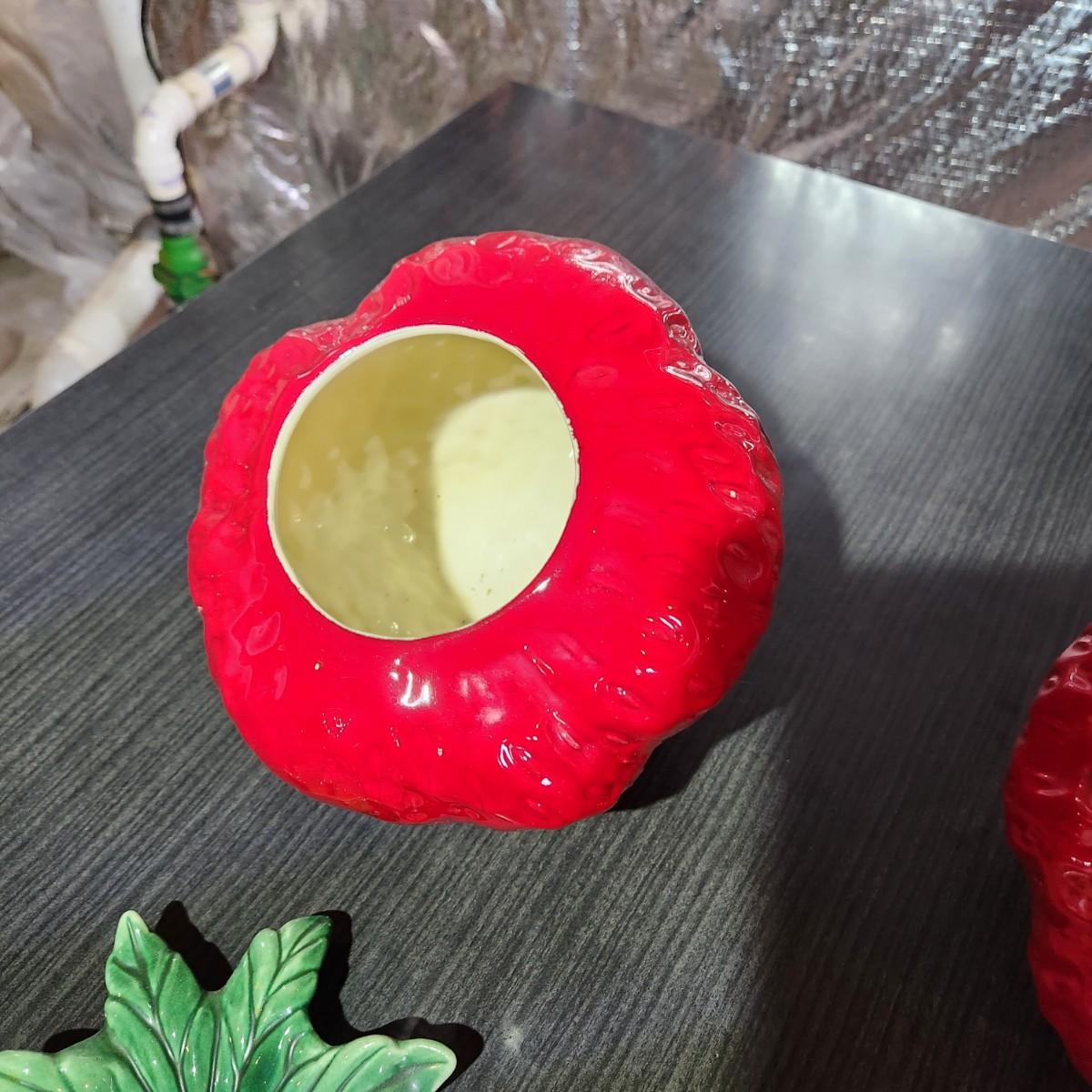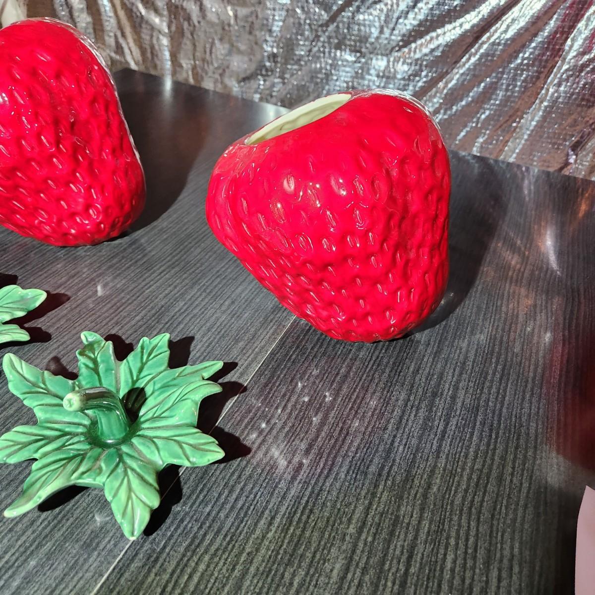 2 Large Strawberry Ceramic Red Tilted Cookie Jars