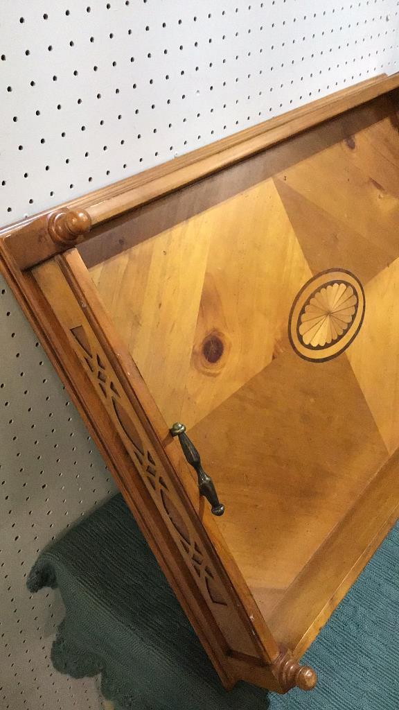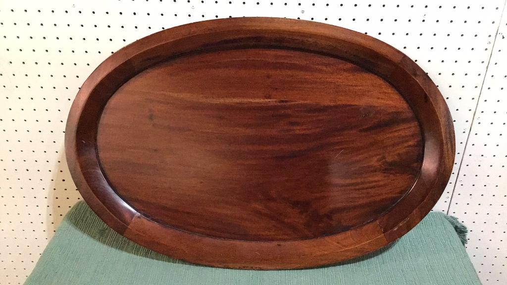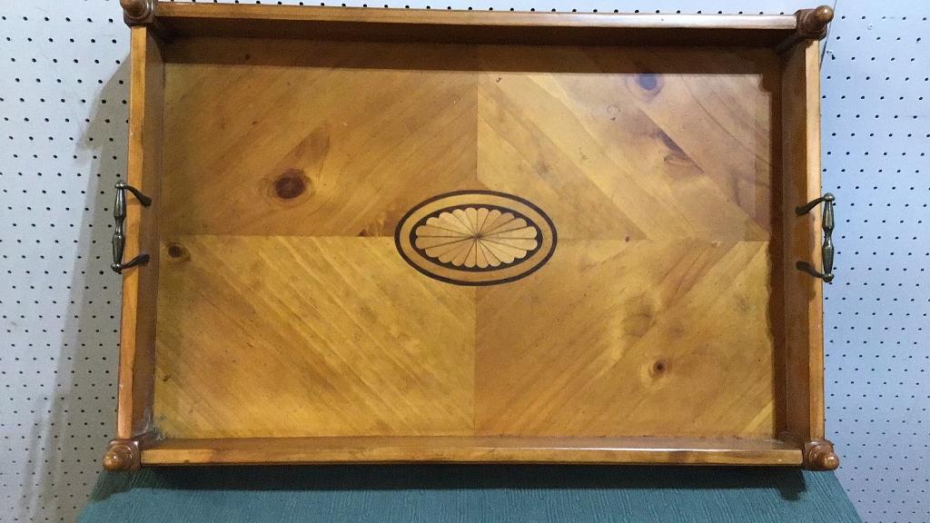 Large handled tray with marquetry center, 32 x 21..oval tray with beveled edge, 29 x 19 Line Item # 129