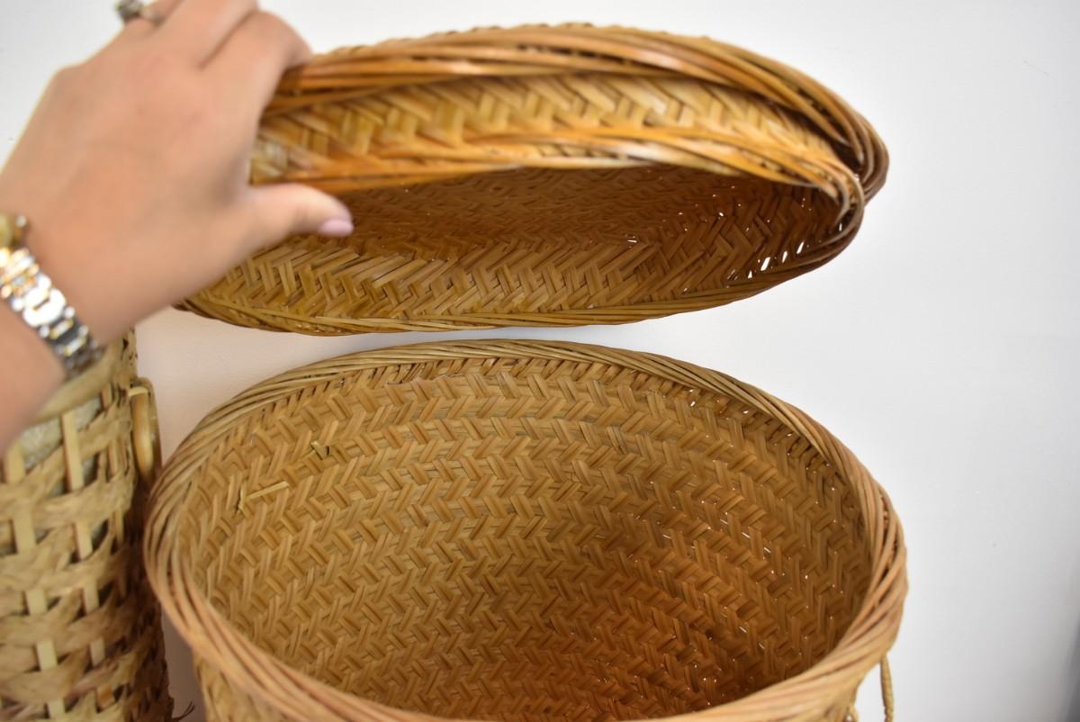2 Laundry Basket Hamper Baskets with Lids. Wicker? Vintage?