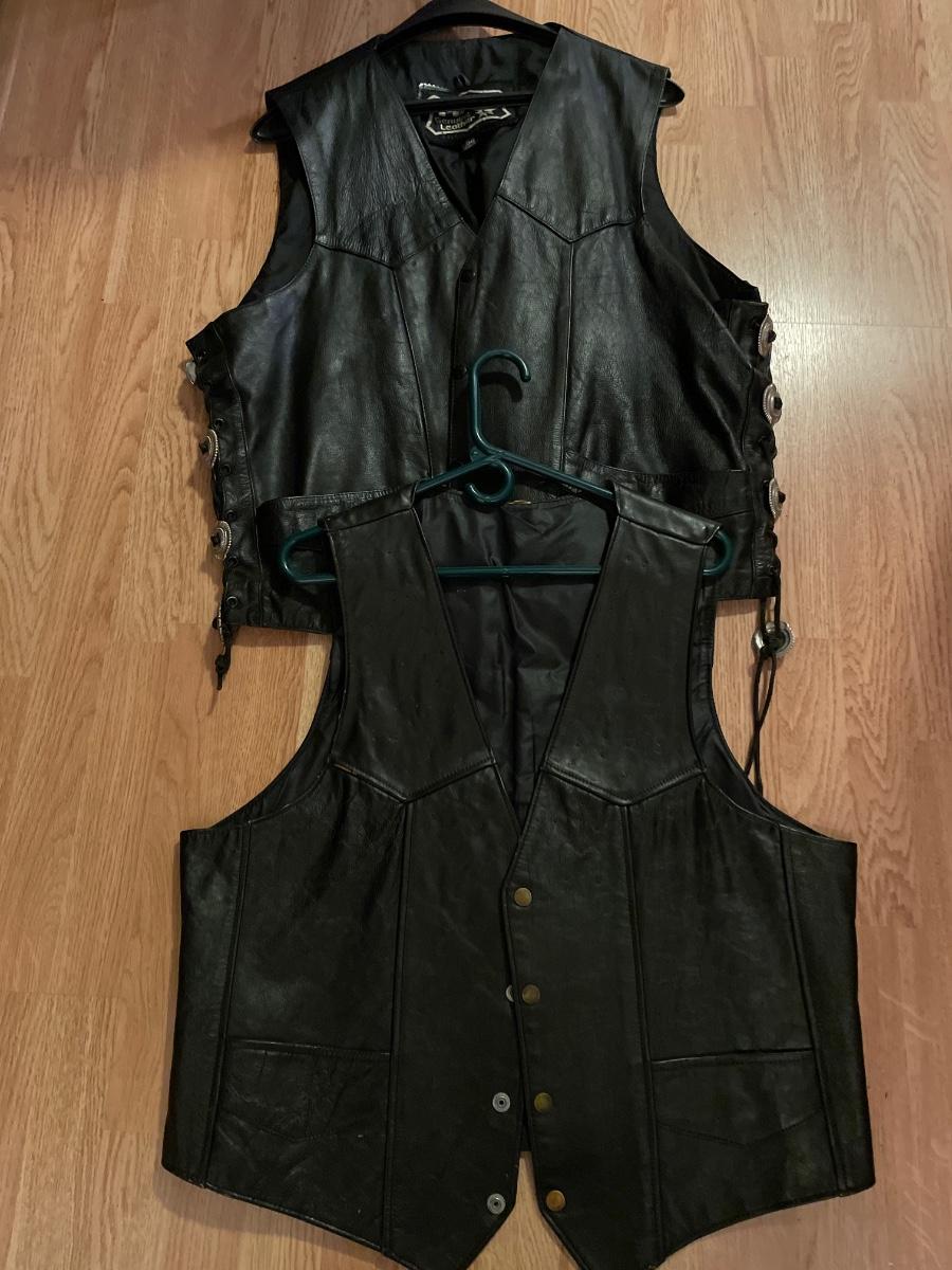 2 leather vests with HD patches on the back