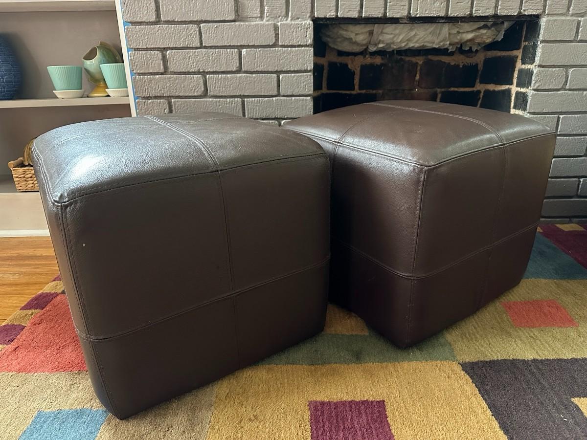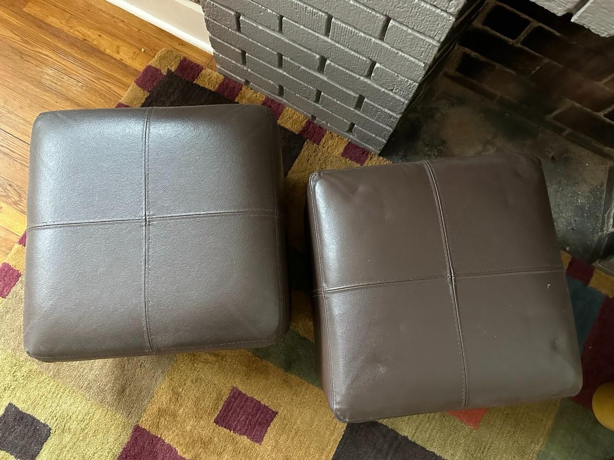 Matching Ottomans are brown and in great condition. They measure 18" x 18" x 18" each