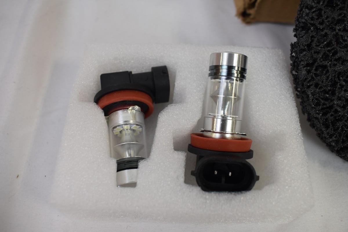 2 LED Fog Light Bulbs Purple and 4 Strip Away 5"x 7/8" DCF Wheels - New