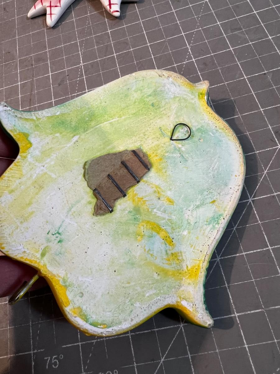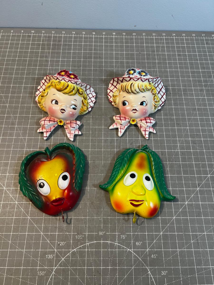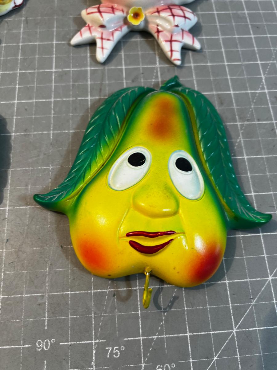 2 LEFTON Wall Pockets & 2 Plaster Fruit Hooks