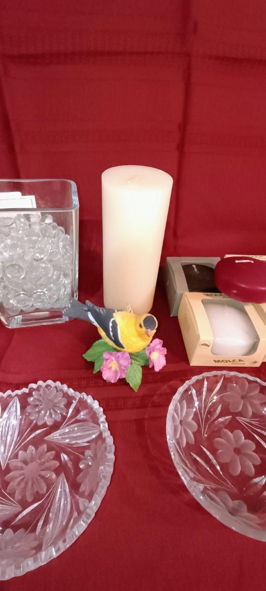 2 LENOX BIRDS, CANDLES, VASES AND CRYSTAL DISHES