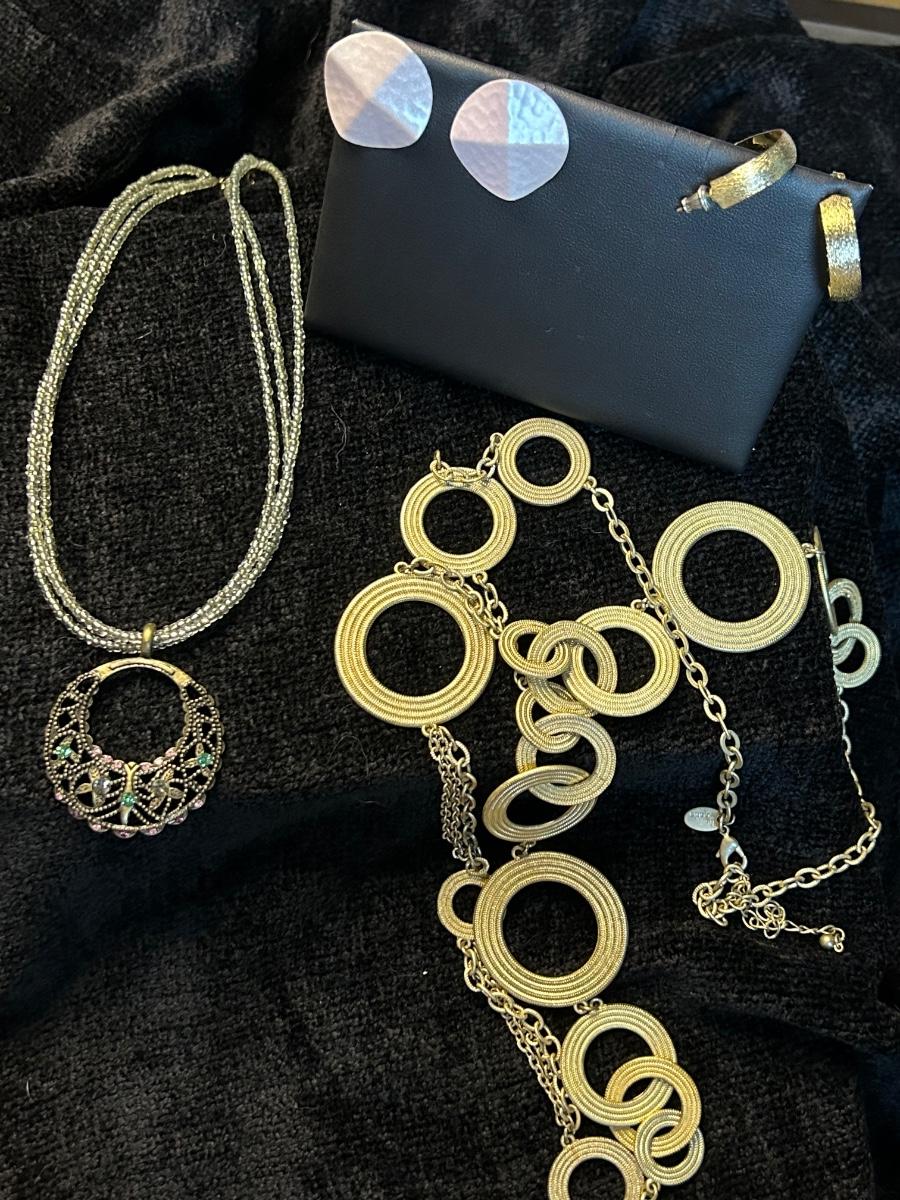 The earrings are both pierced but not exact matching w/ necklaces. Necklaces are adjustable