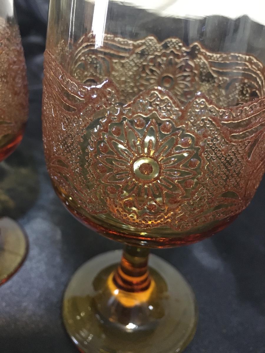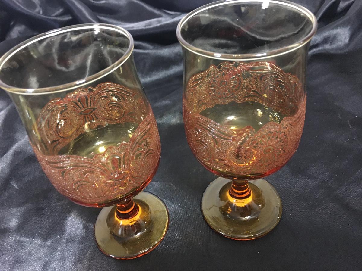 2 Libbey Amber 11 Oz Goblets In The Americana Pattern, USA