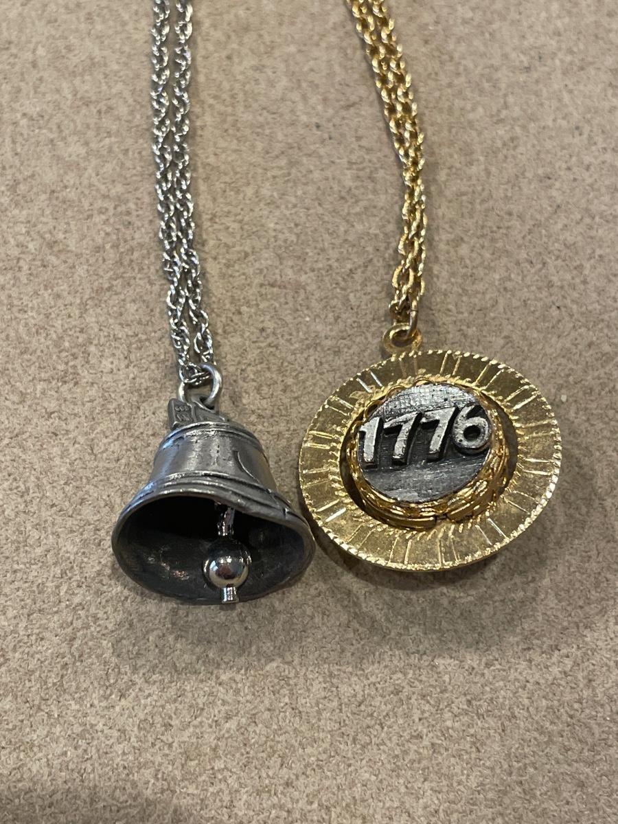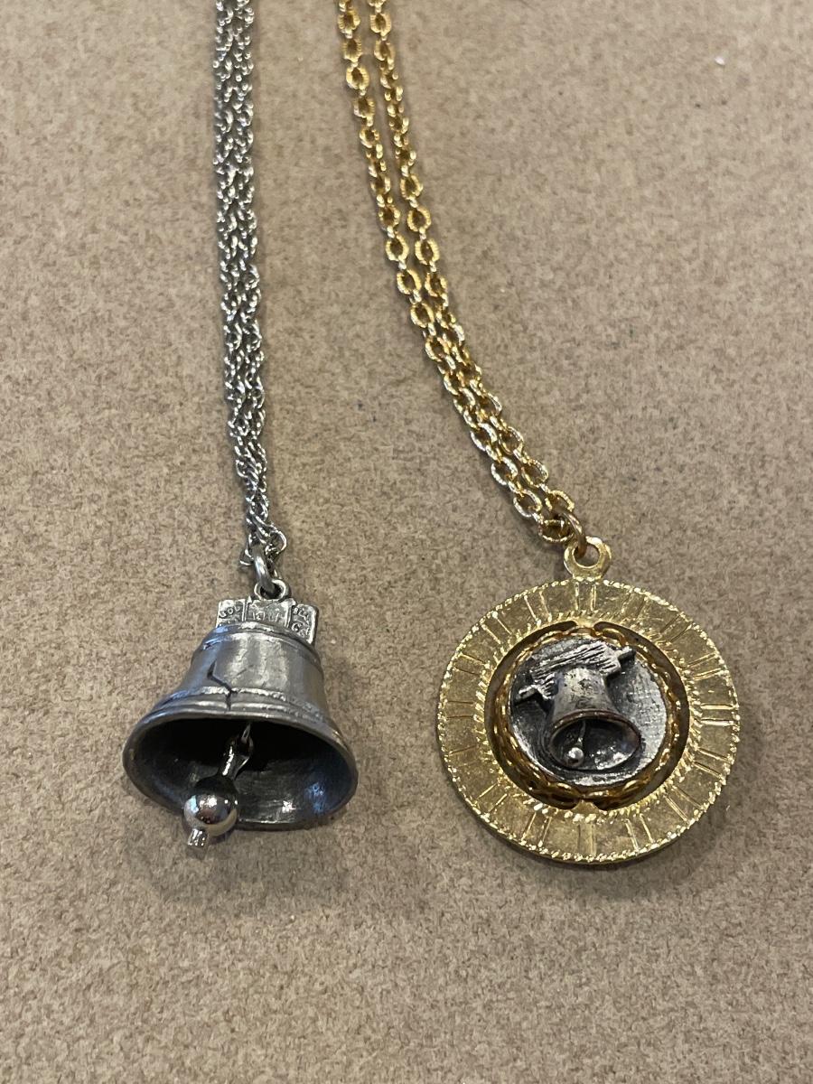 2 vintage Liberty Bell pendants