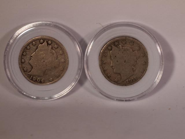 1904 and a 1911 Silver Liberty Head Nickels in Above average condition. Good Dates and details