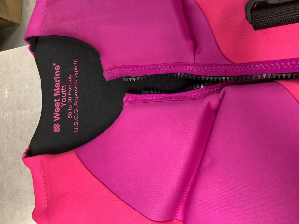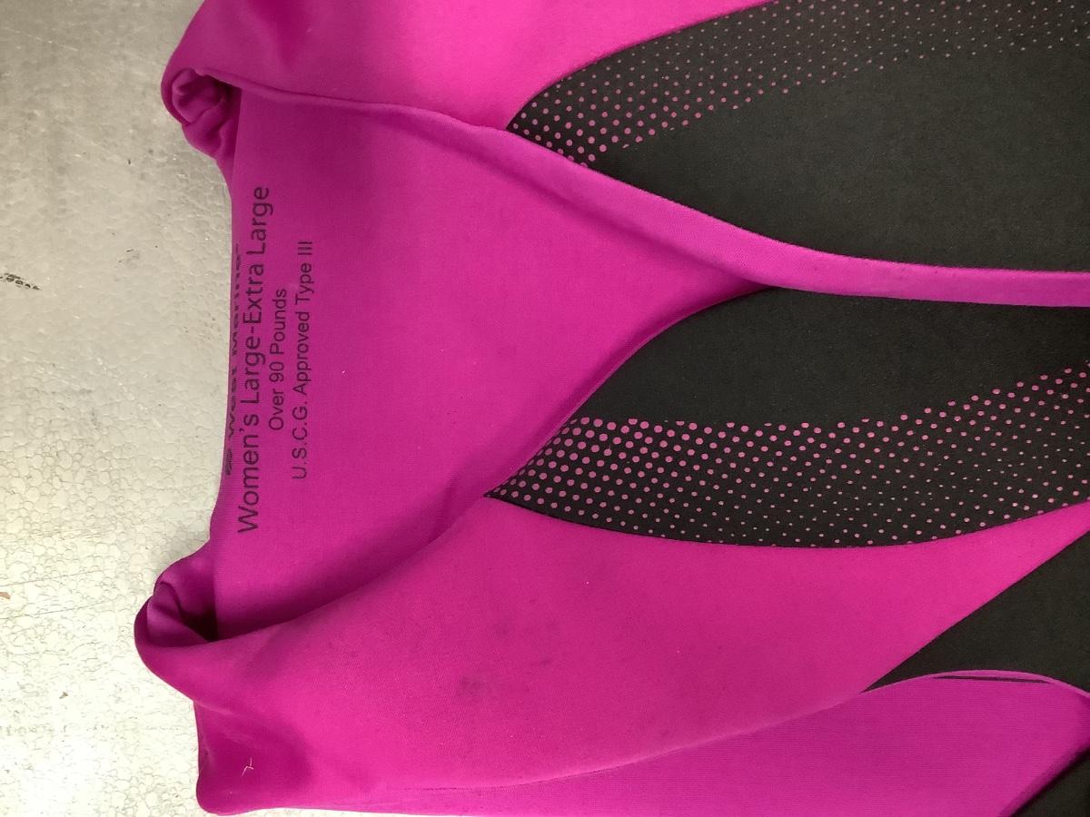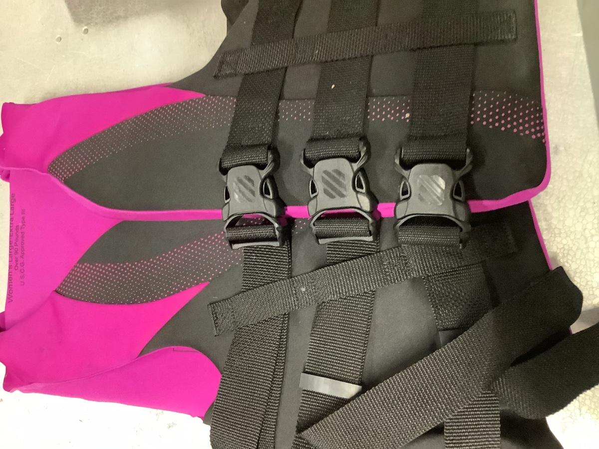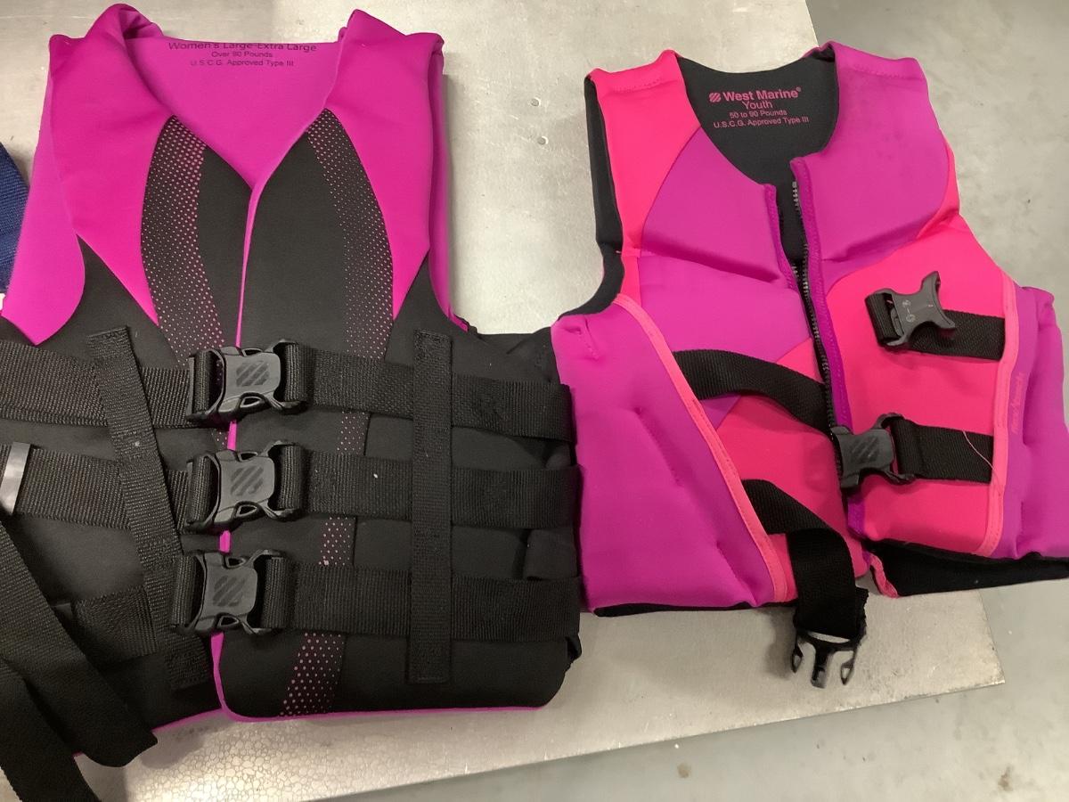 2 life vests, youth and women’s pink