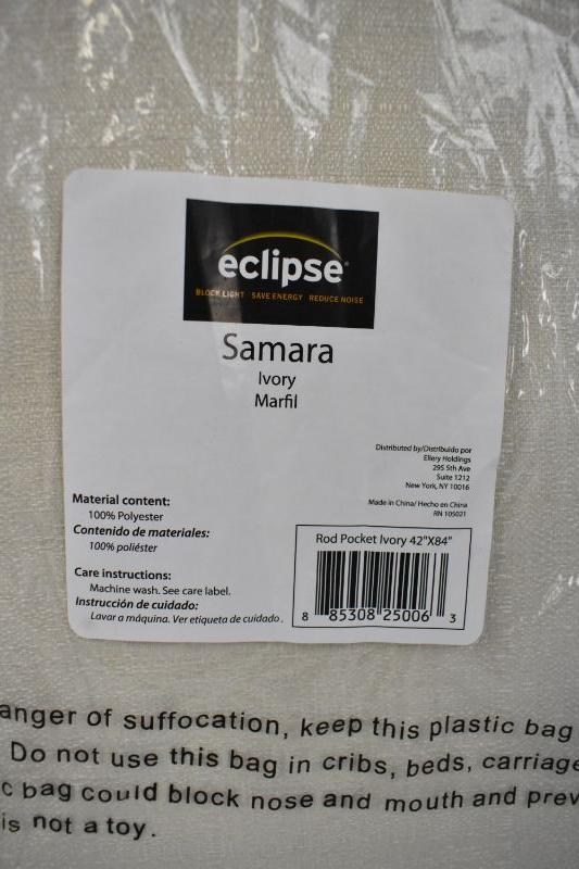 2 Light Blocking Curtains Samara Ivory, Rod Pocket Style 42" x 84" - New