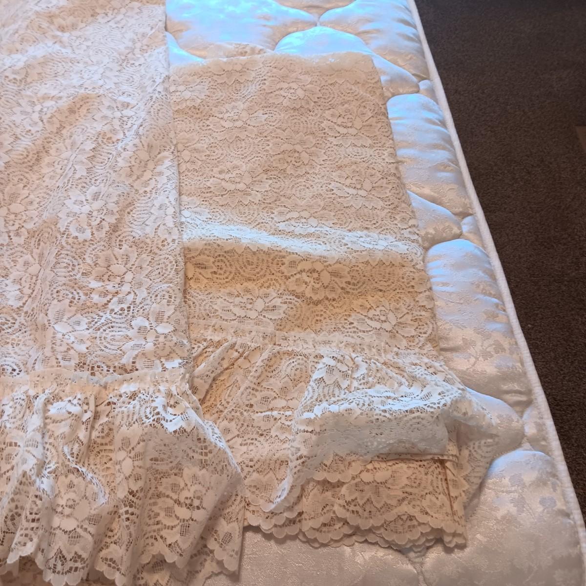 2 LINED CURTAIN PANELS AND 2 LACEY SHEERS