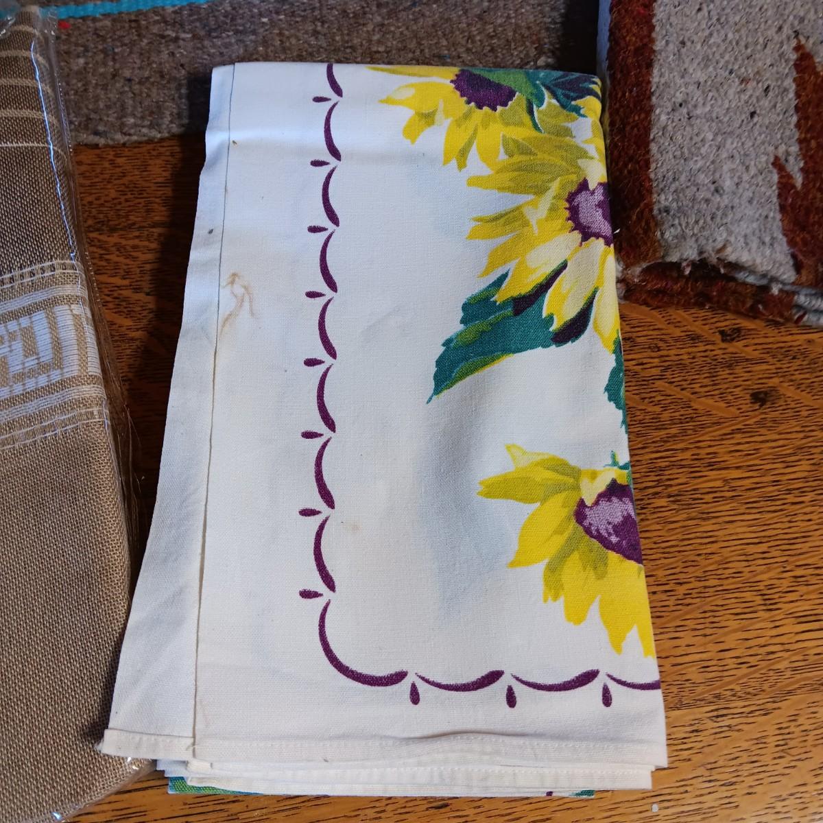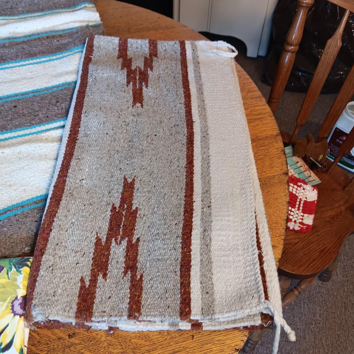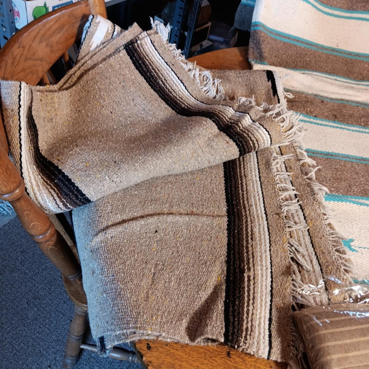2 LINEN TABLECLOTHS, 2 WOVEN RUGS AND A BLANKET FROM MEXICO