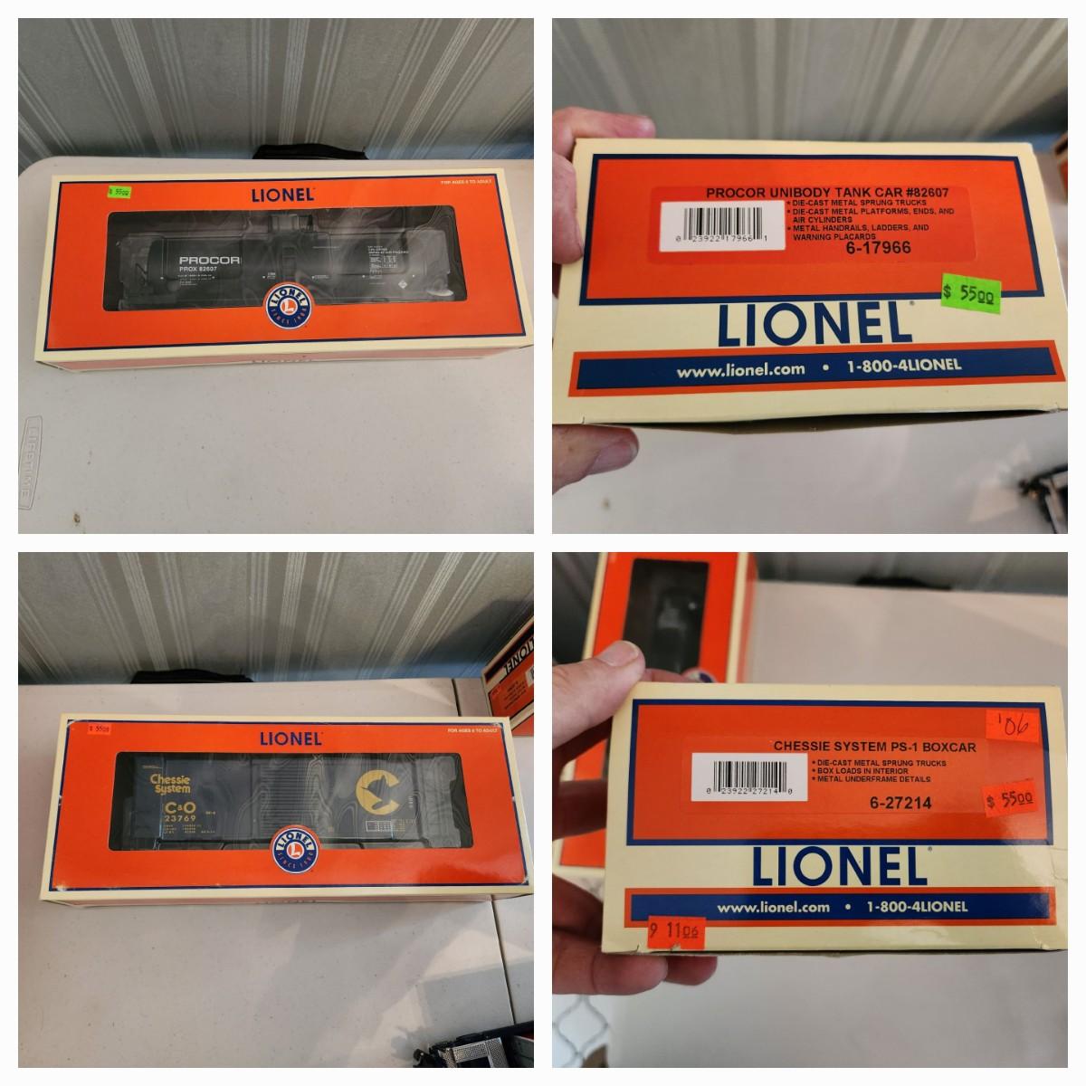2 Lionel Trains Railcars Procor Tank Car Chessie Systems PS-1 Boxcar