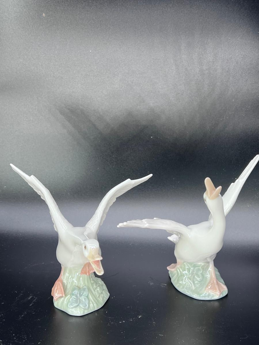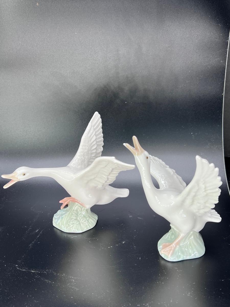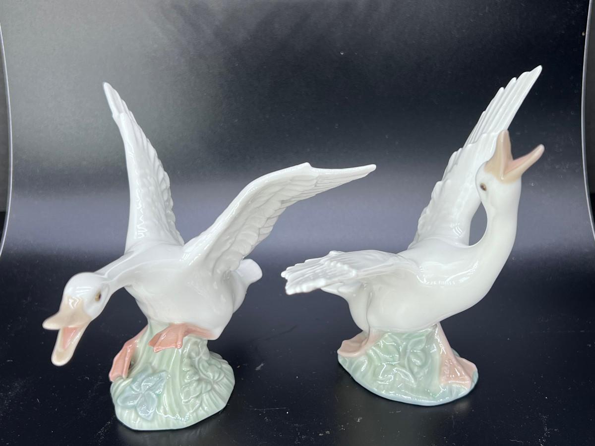 (2) Lladro Flying Honking Geese