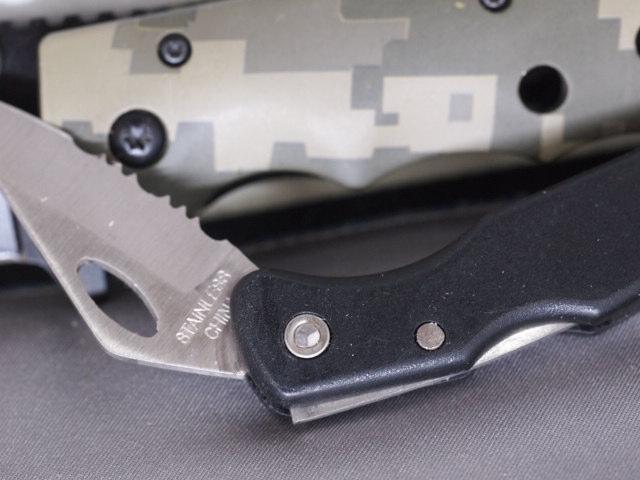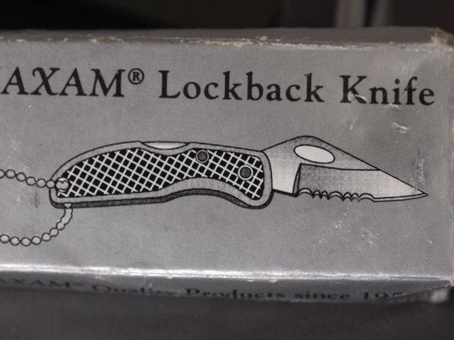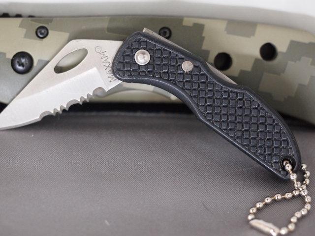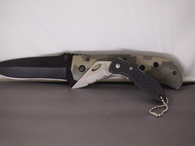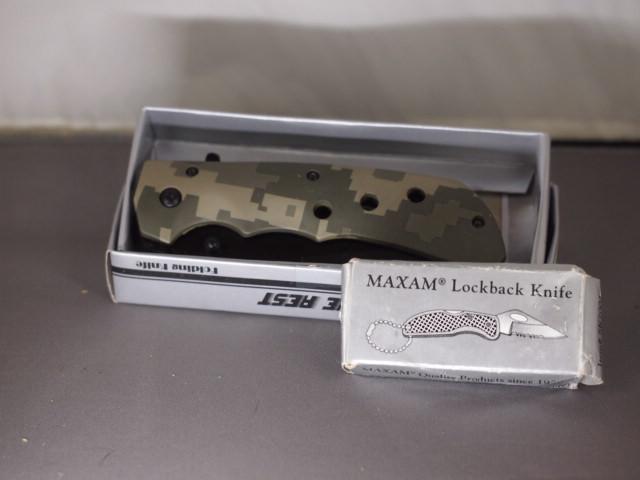 2 Lock Blade Knives one Camo 3 1/2 inch one 1 inch Maxam Key Chain knife