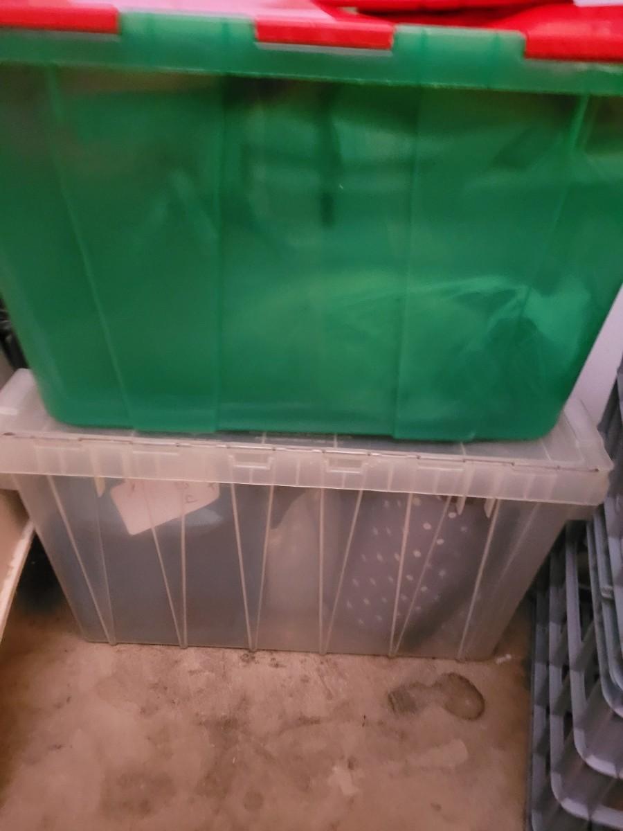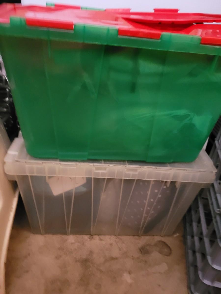 Red & Green tote and a clear tote. interlocking lids. Contents not included.