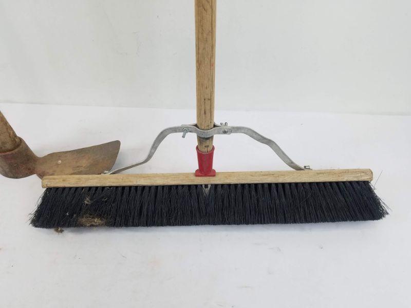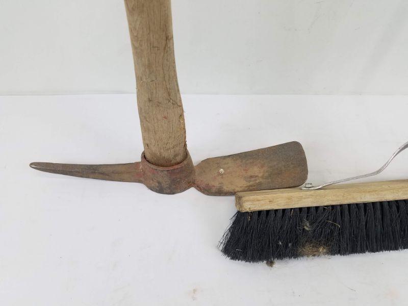 2 Long Handle Tools: Push Broom & Pick-Axe