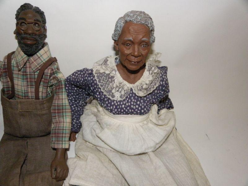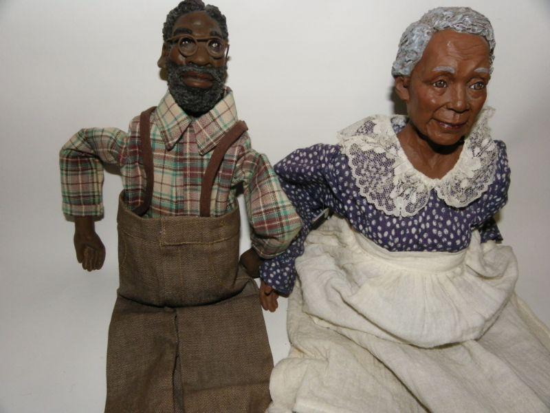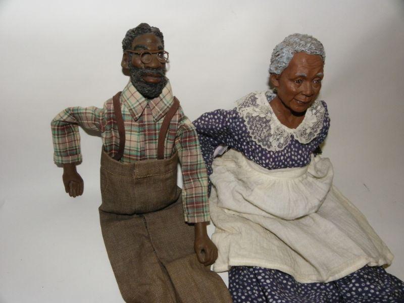 2- Grand Ma & Pa " Daddy Long Legs"   Black figurine dolls Grand Ma and Pa.