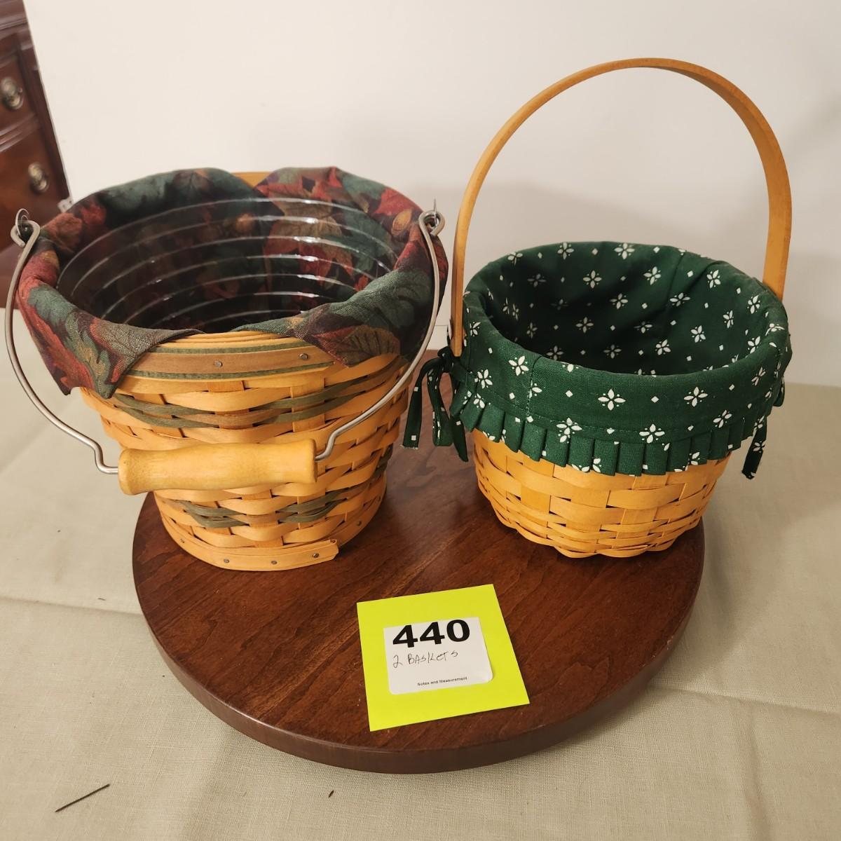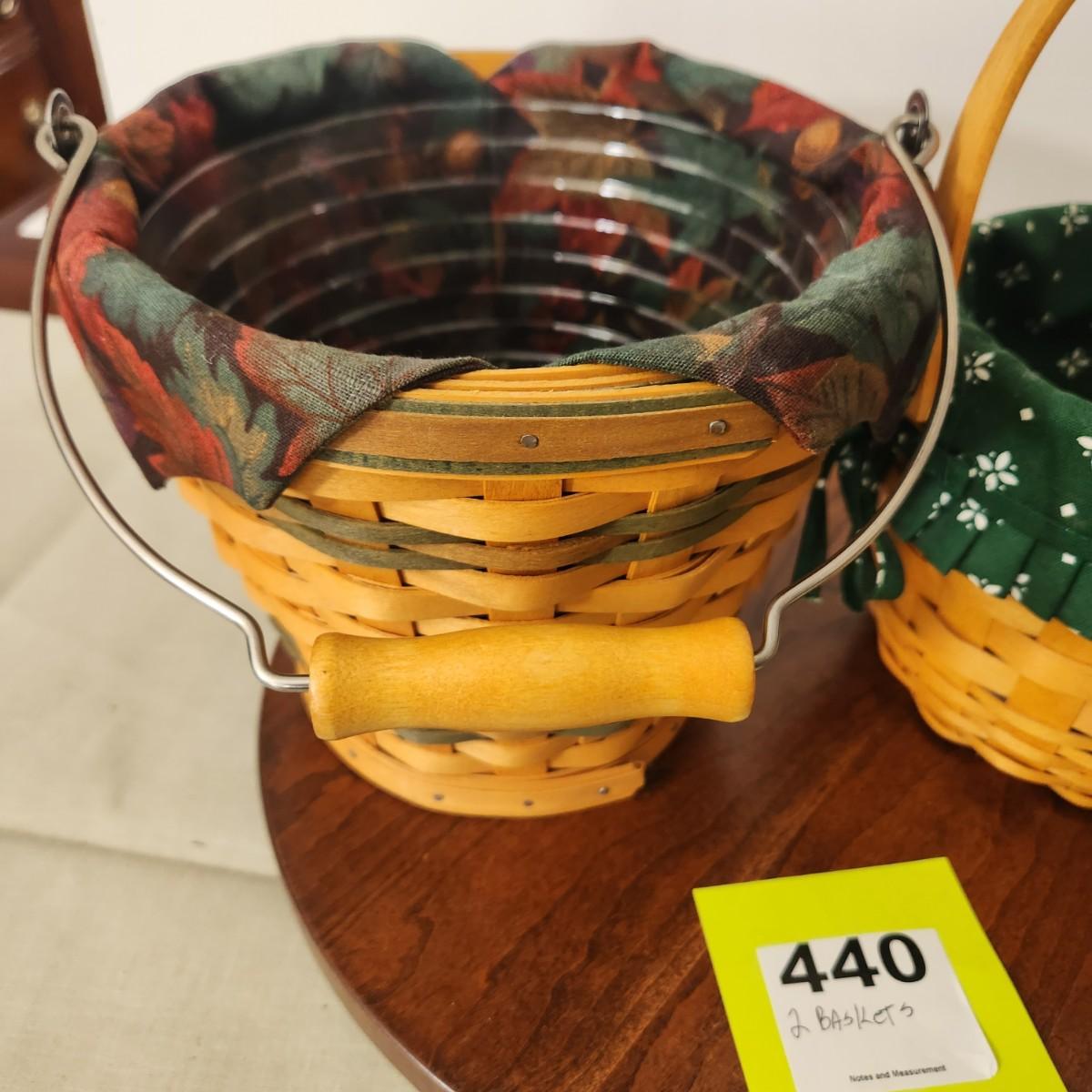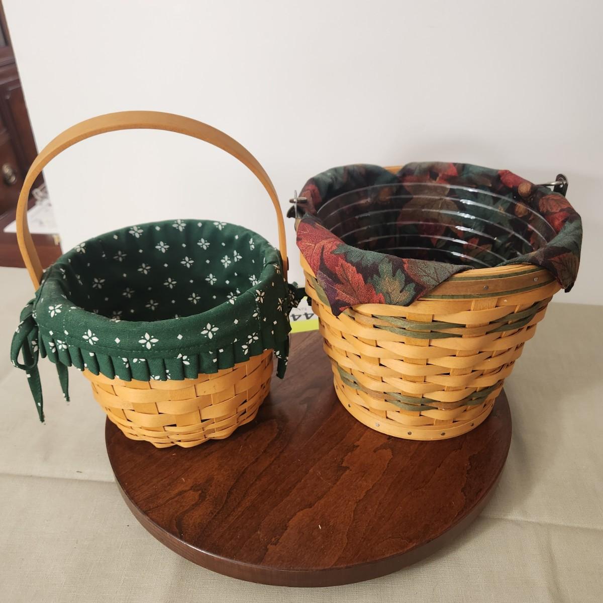 2 Longaberger Baskets w handles w Liners 1 w Protector 2002