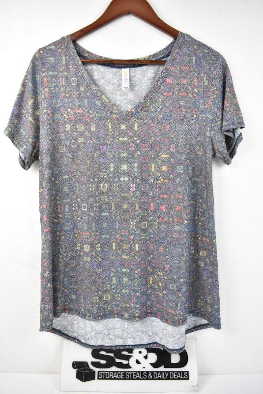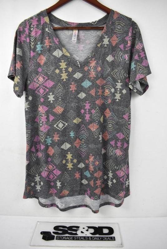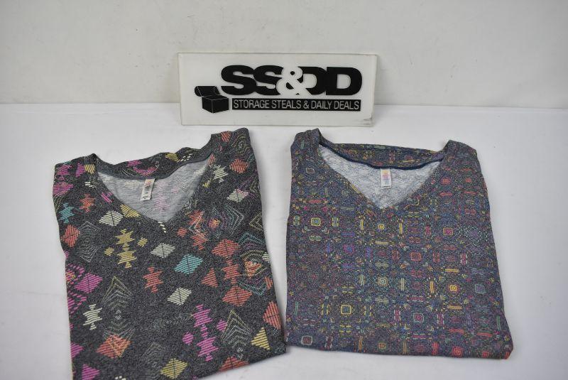 2 LuLaRoe Christy Shirts Size Medium, Gray w/ colorful designs