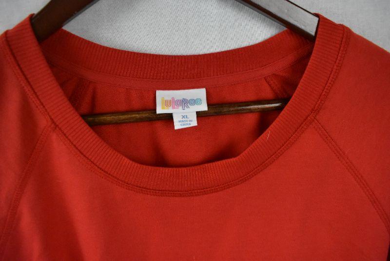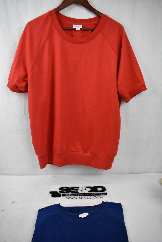 2 LuLaRoe "Jane" Short Sleeve Sweatshirt Tops, Women's size XL Red & Navy