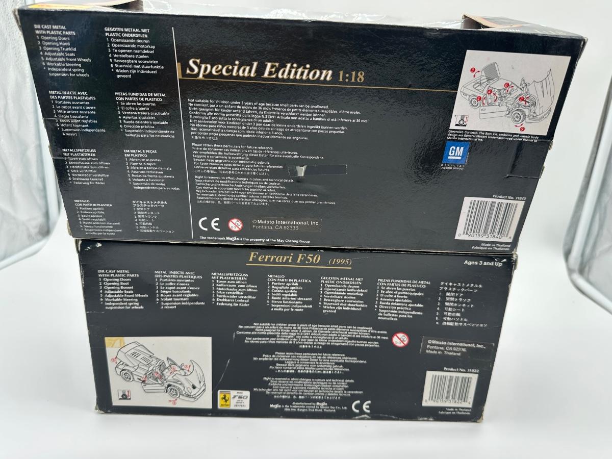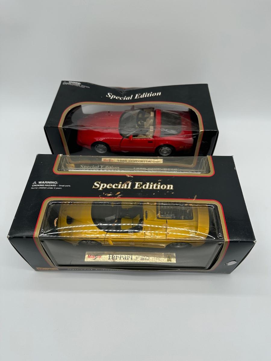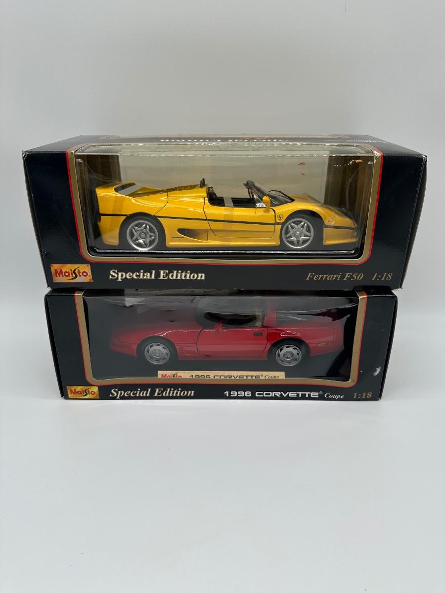 2) Maisto Special Edition 1:18 Diecast Cars – Ferrari F50 & 1996 Corvette (Boxed)