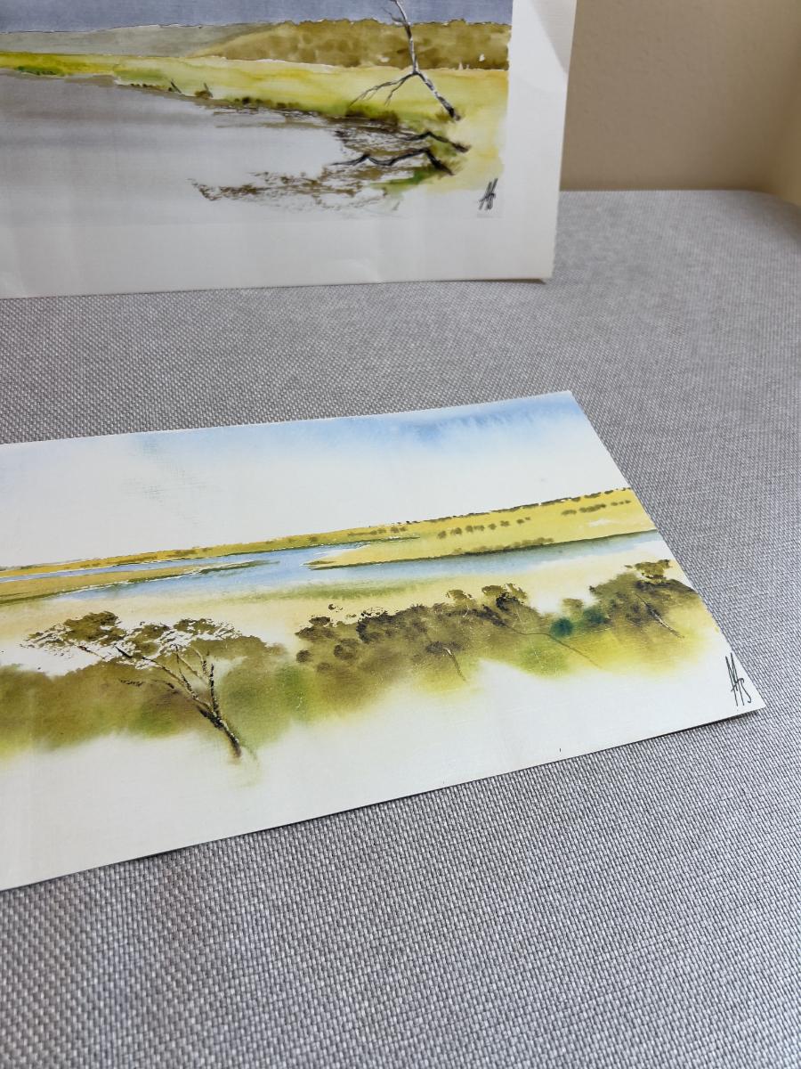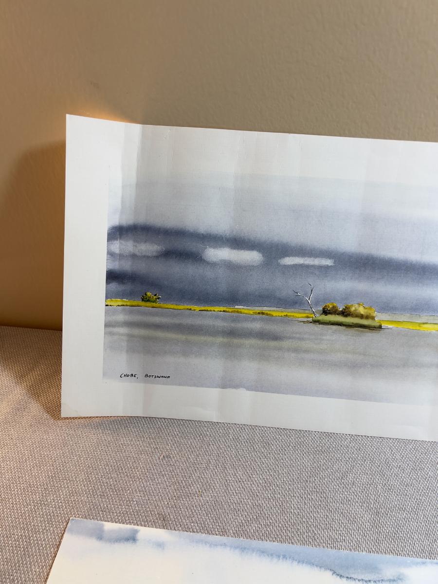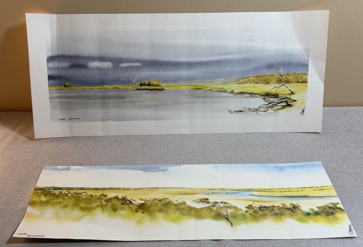 2 Marked CHOBE BOSWANA Water Colors 20" Long