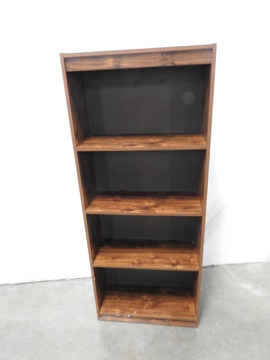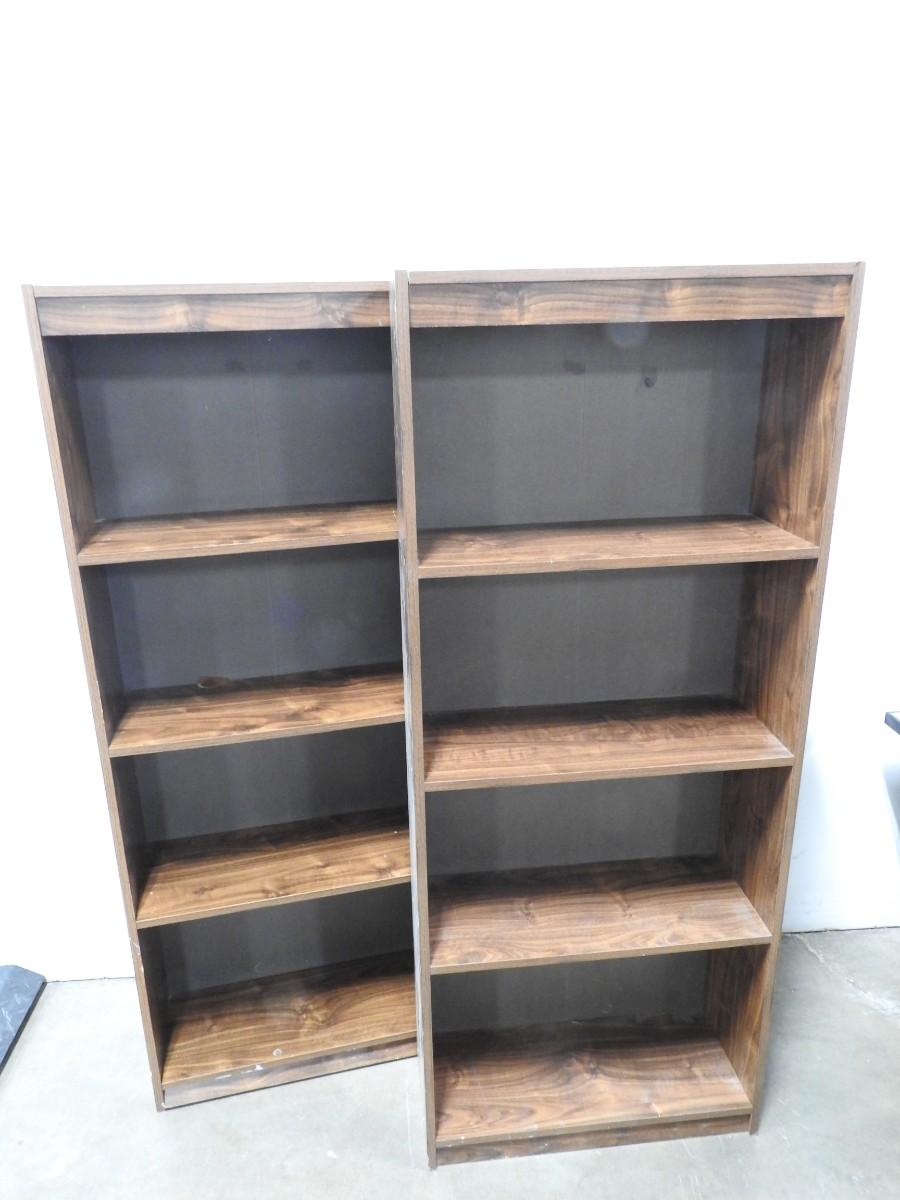 2 Matching Bookshelves, Brown Wood with 4 Shelves, 24" x 12" x 59", Good Condition