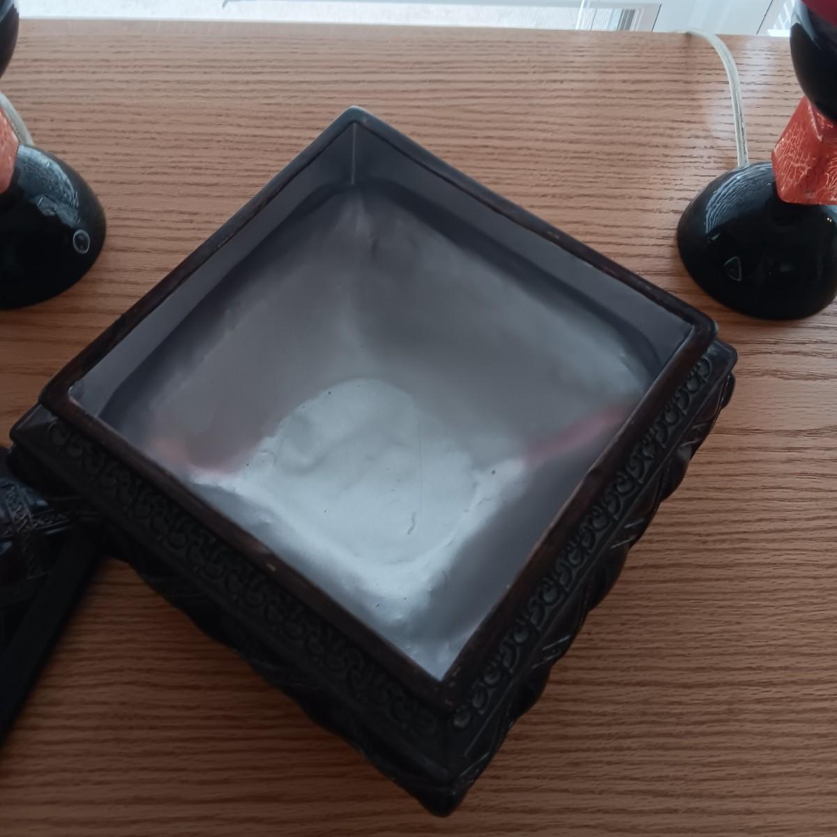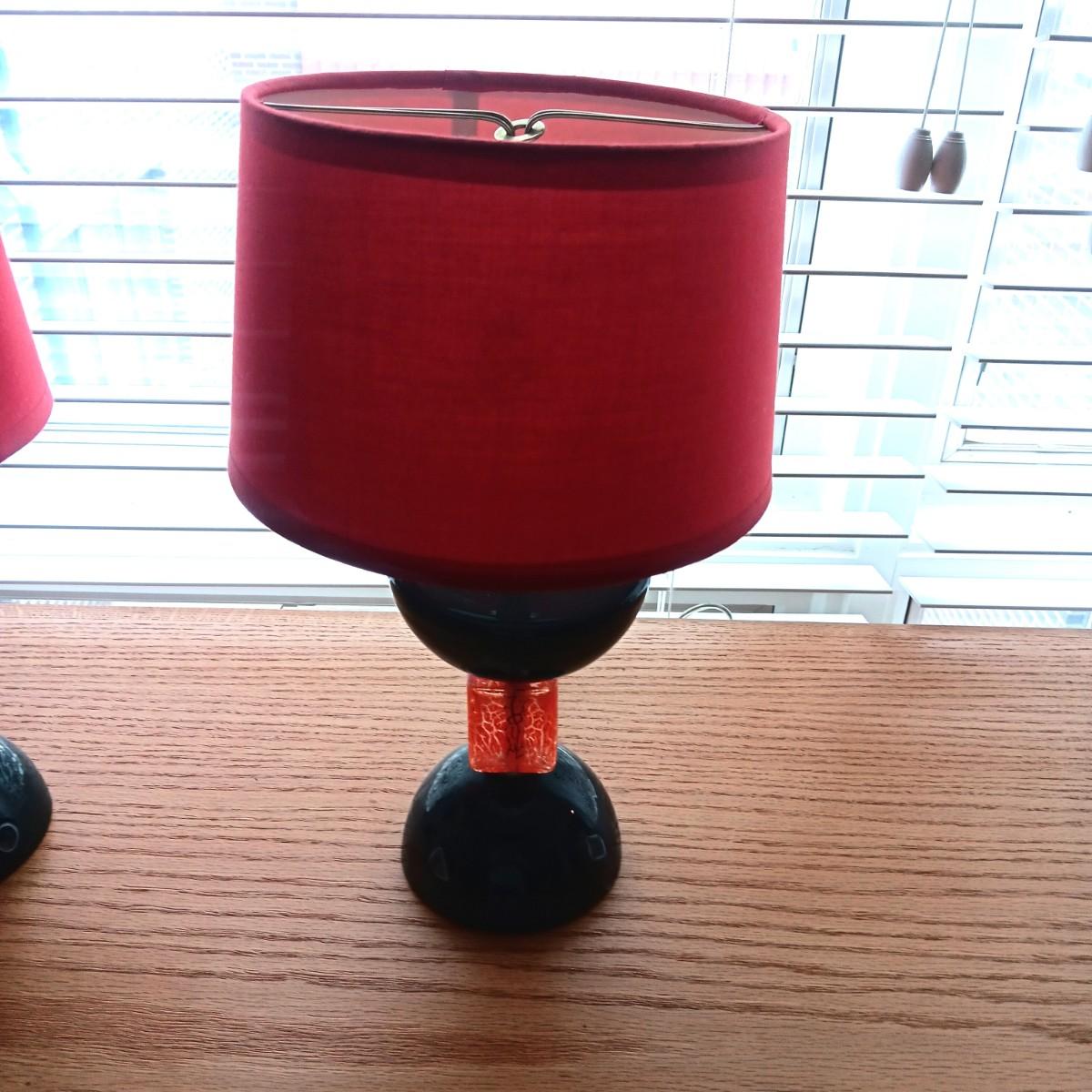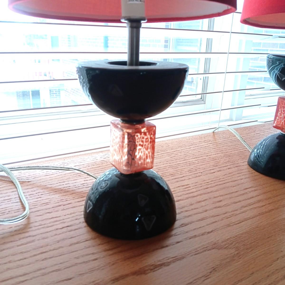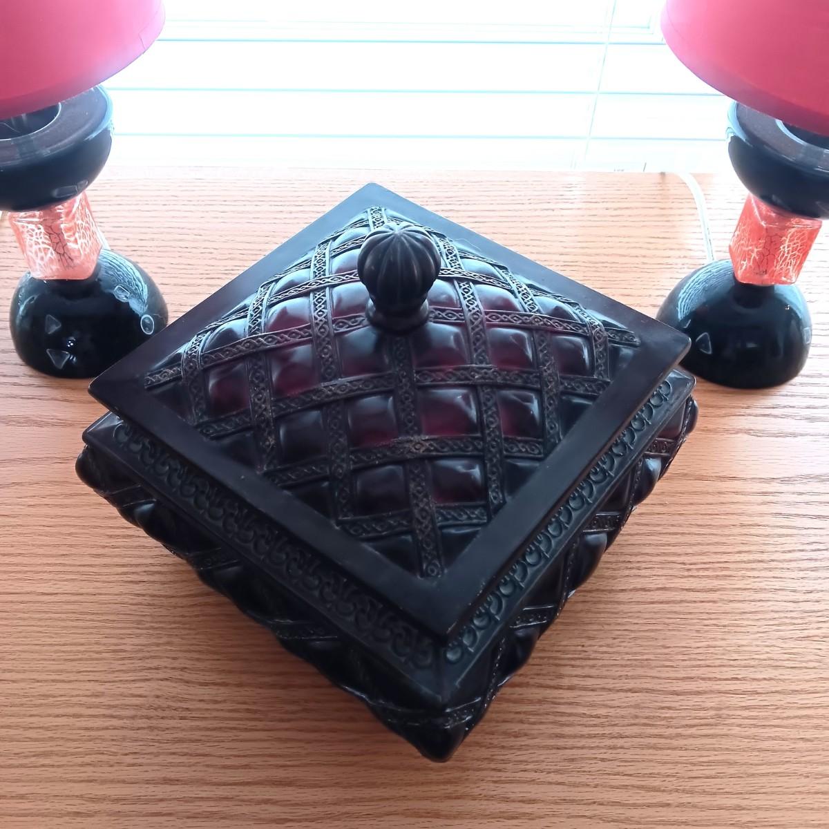 2 MATCHING GLASS BASE LAMPS AND A BOX WITH A LID