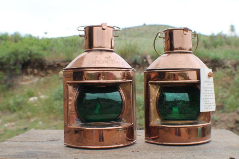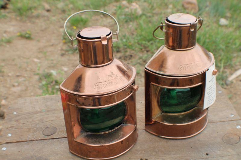 Lot #34: (2) Matching Green Shade Reproduction Lanterns