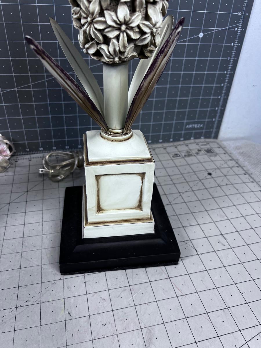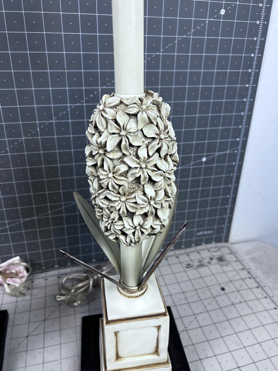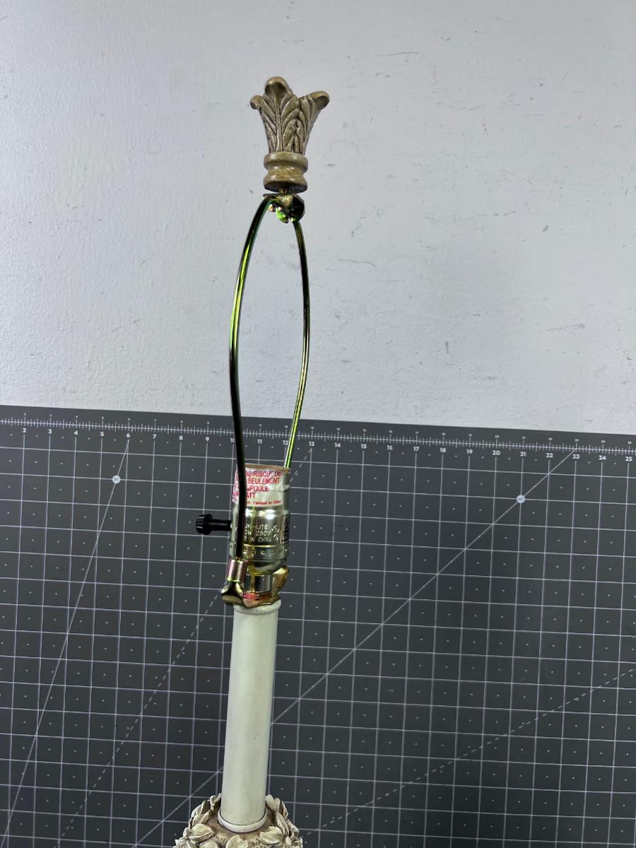 The Finials are not matching but the lamps themselves are. Good Used. Condition. 32" to the Top of the Finial.