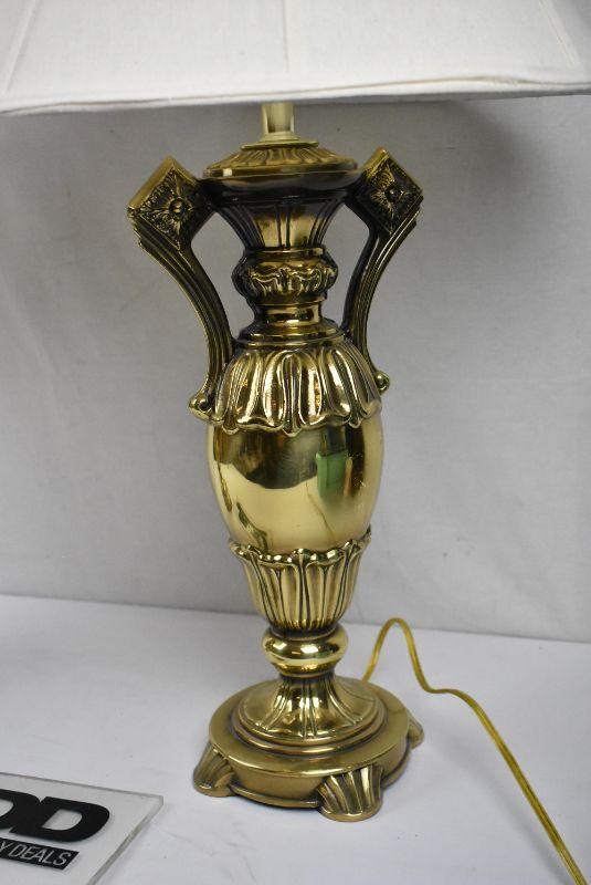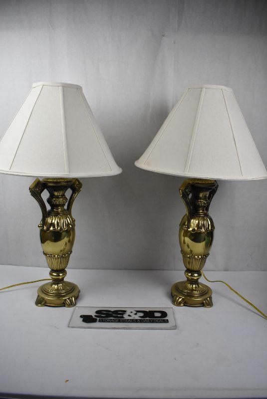 2 Matching Lamps. Brass Tone Metal, Cream Shades