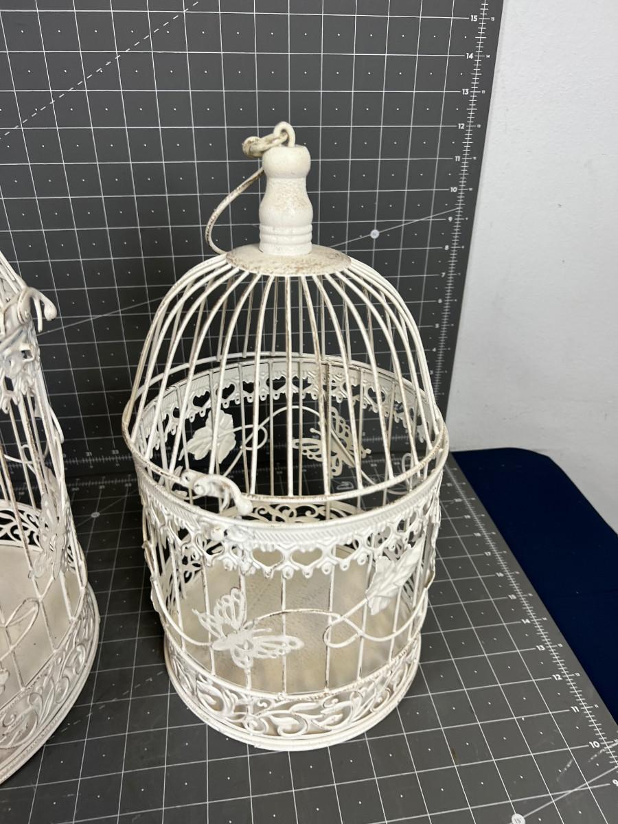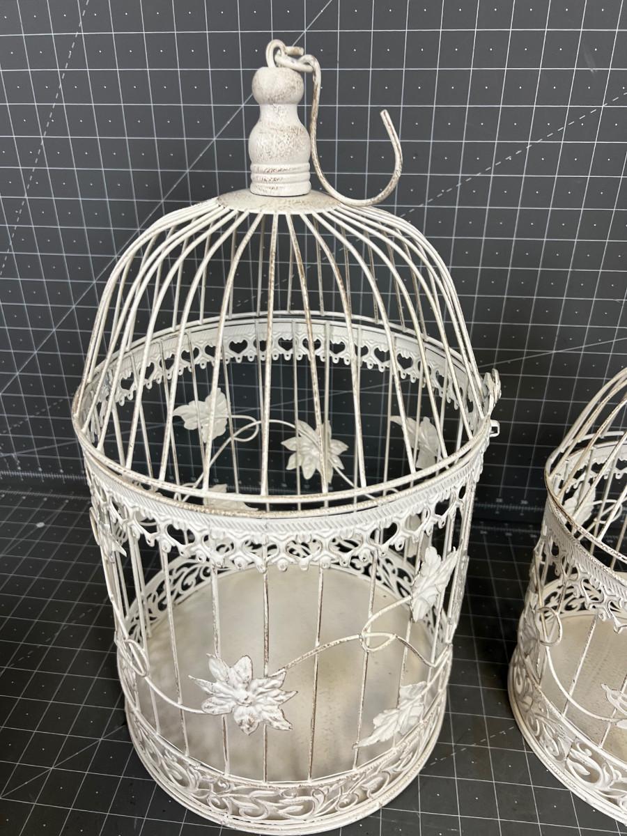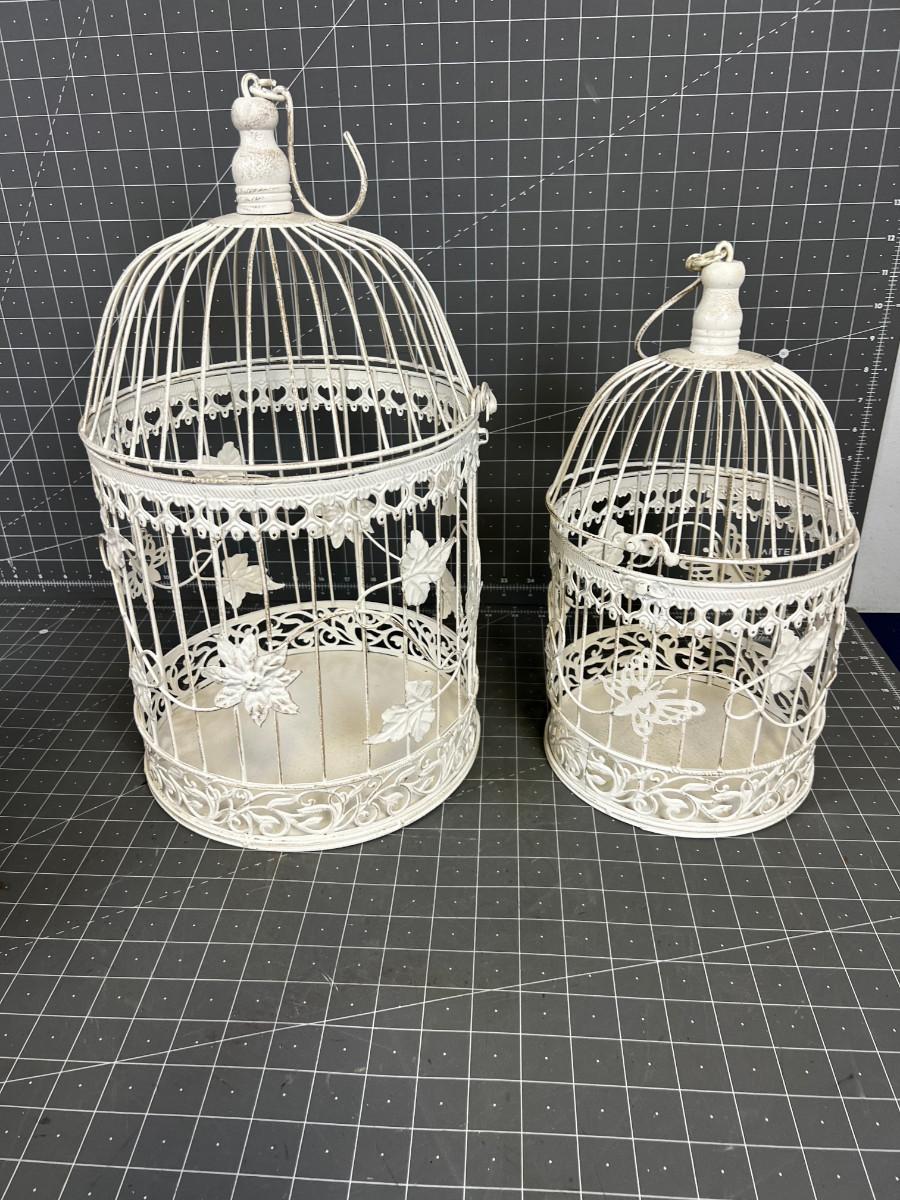 2 Matching Nesting Bird Cages, White